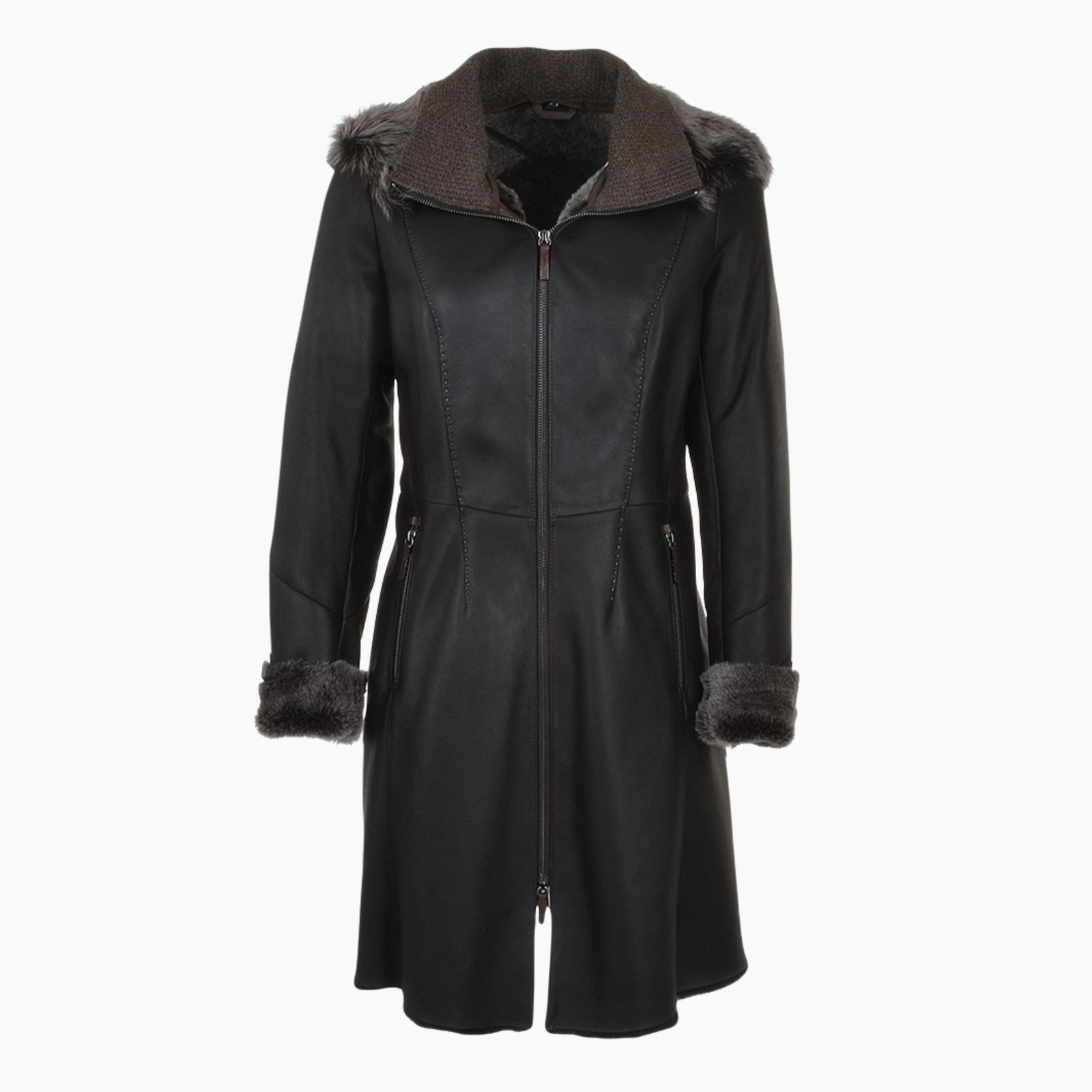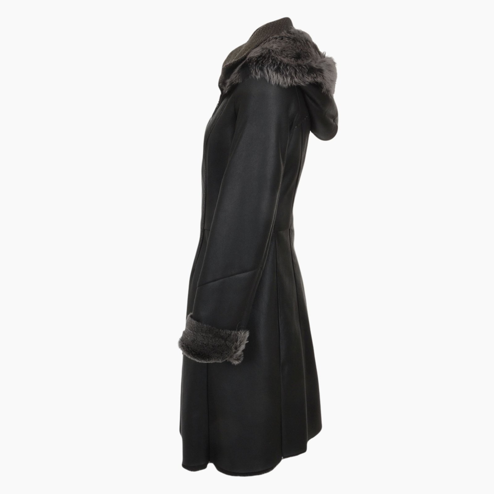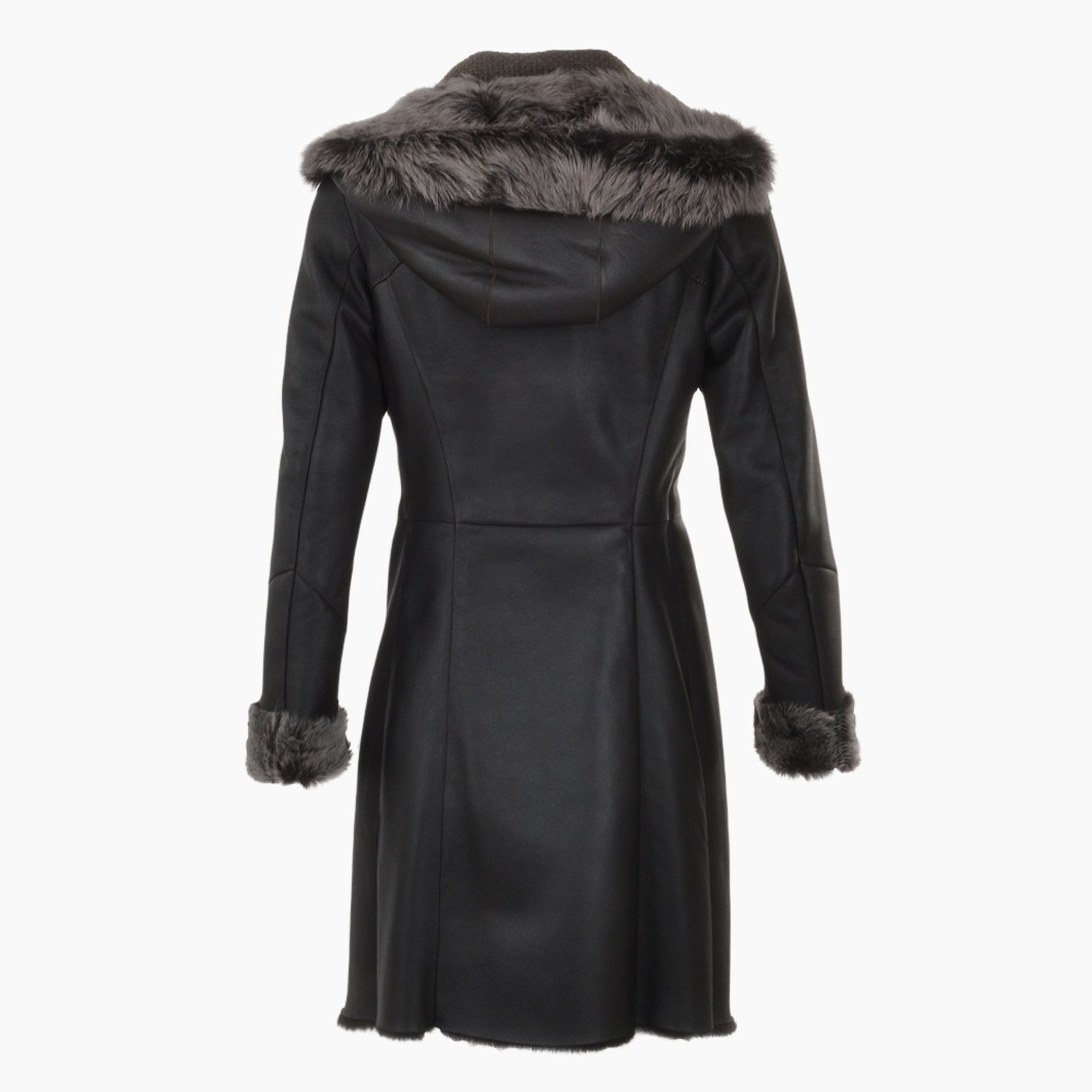 - Style: Women’s 3/4 Length Hooded Shearling Coat