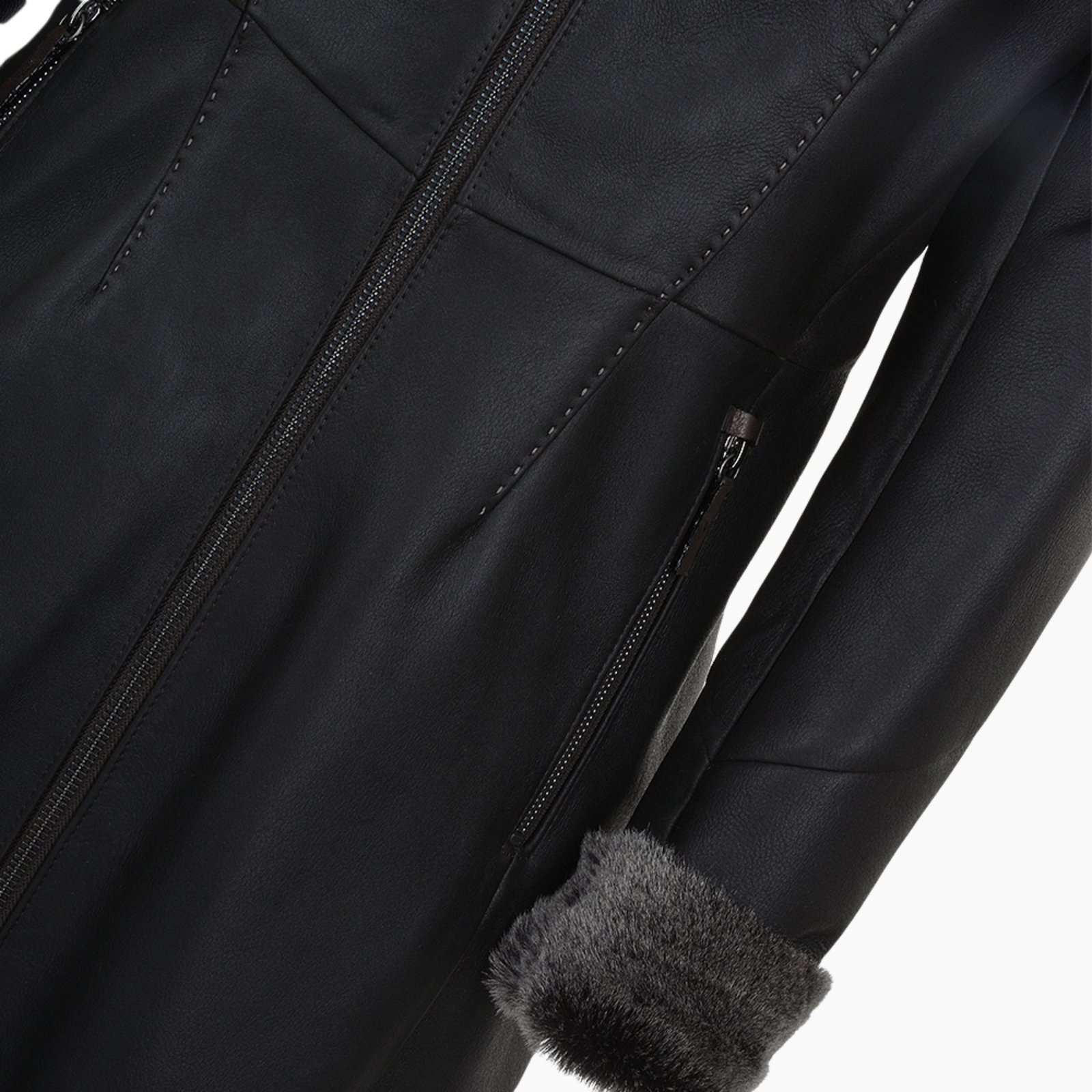 The star feature is the Toscana long hair sheepskin hood, offering a glamorous, soft, and naturally warm finish. A material trimmed collar adds a refined touch, while the optional turn up cuffs allow you to personalize the look and comfort level.