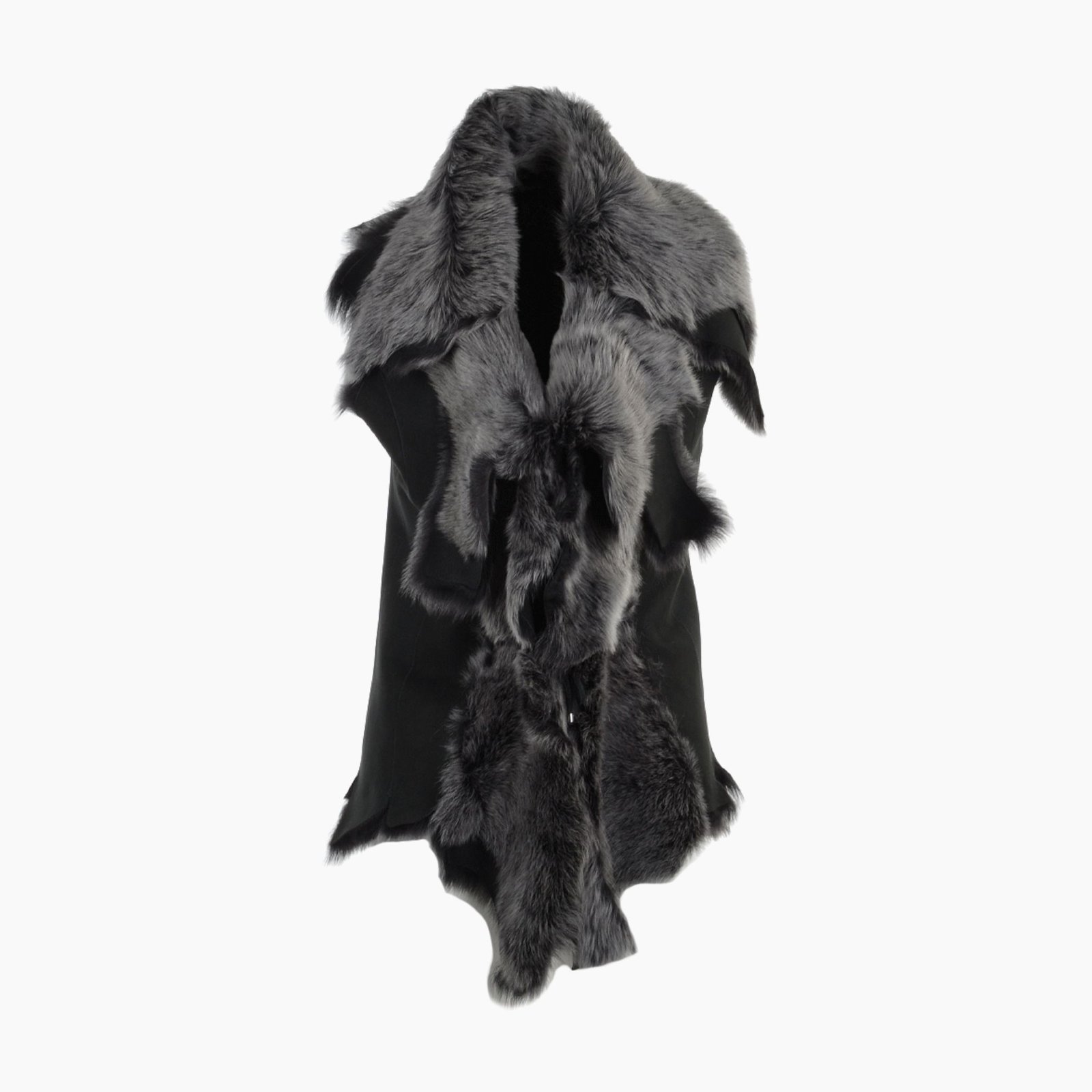Upgrade your wardrobe with the Double Collar Suede Leather Gilet in Black from Vogue Jacket a luxurious layering piece crafted for women who appreciate timeless style and premium quality. Made from 100% genuine Toscana shearling, this gilet features a hand-buffed suede finish that enhances its natural texture and gives it a sophisticated, polished look.