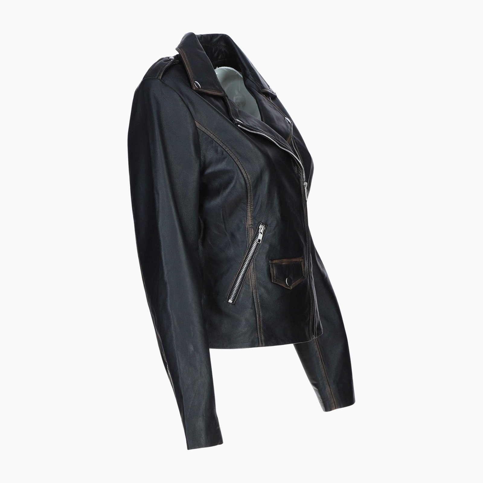 Vogue Jacket Exquisite Leather Ladies Biker Jacket Black Ruboff