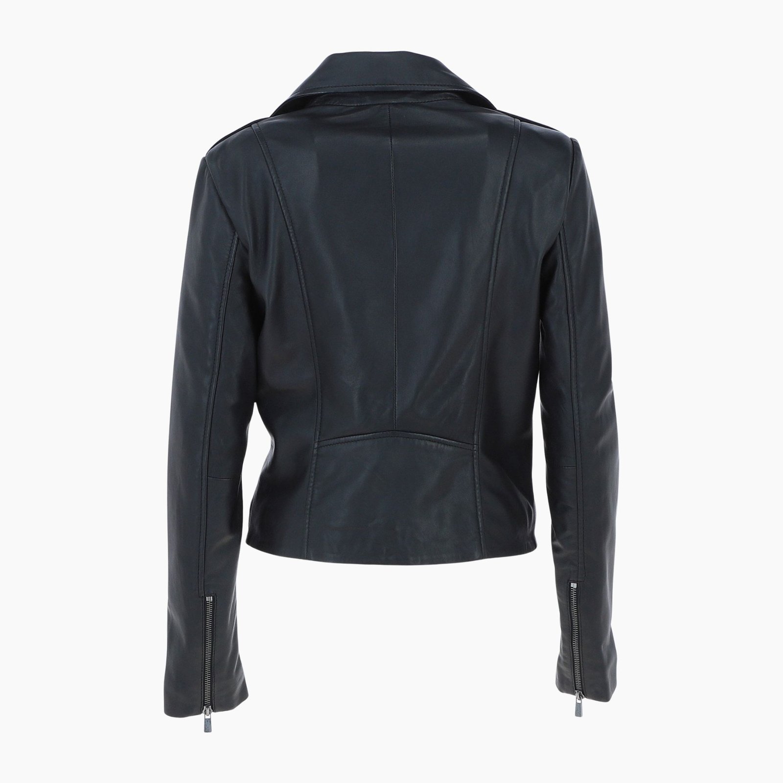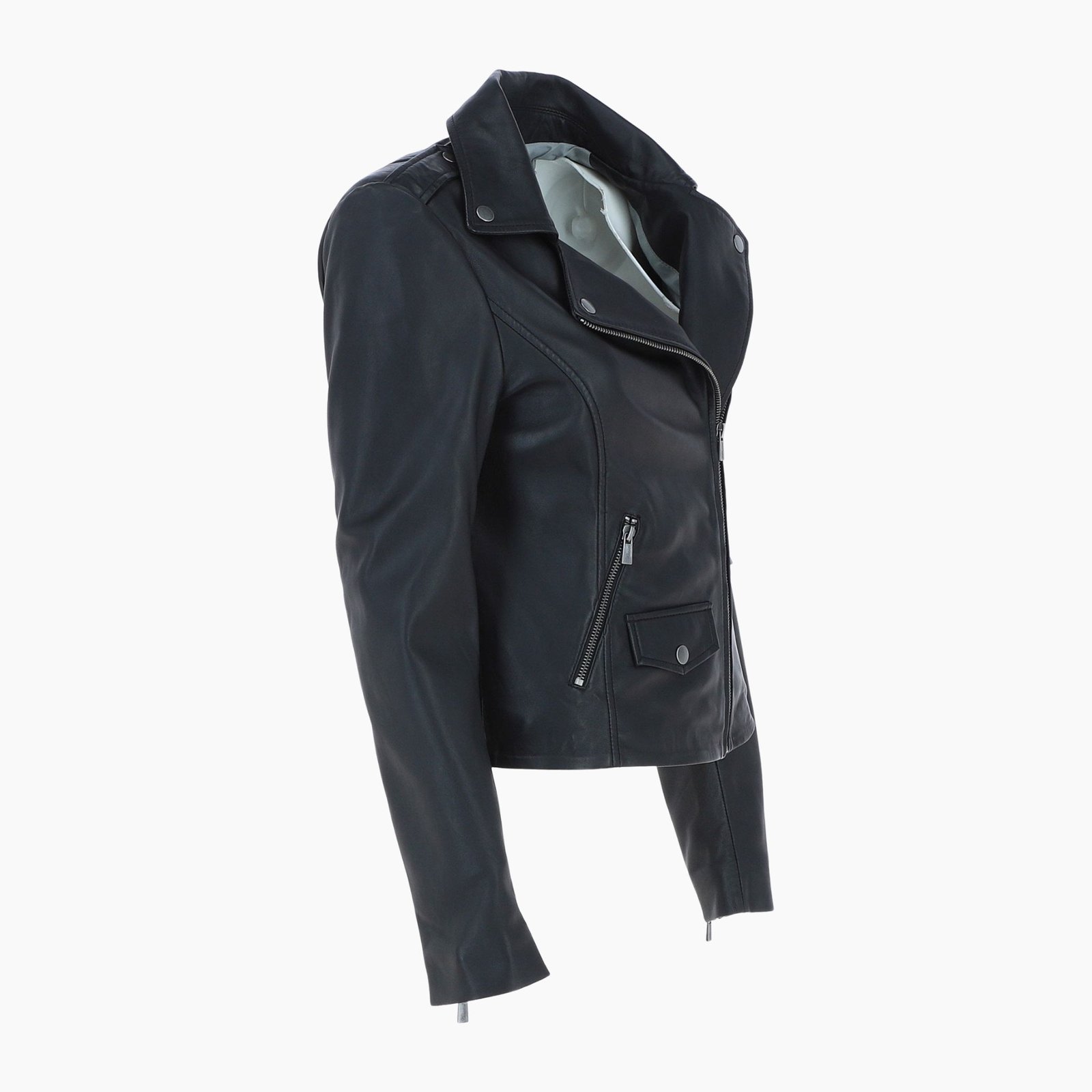Designed with a slim fit silhouette, it enhances your shape while maintaining a sleek, structured look. The side zip fastening creates an iconic biker profile, complemented by subtle stud detailing for a touch of edgy sophistication. Biker-style zip cuffs complete the design, adding both functionality and style.