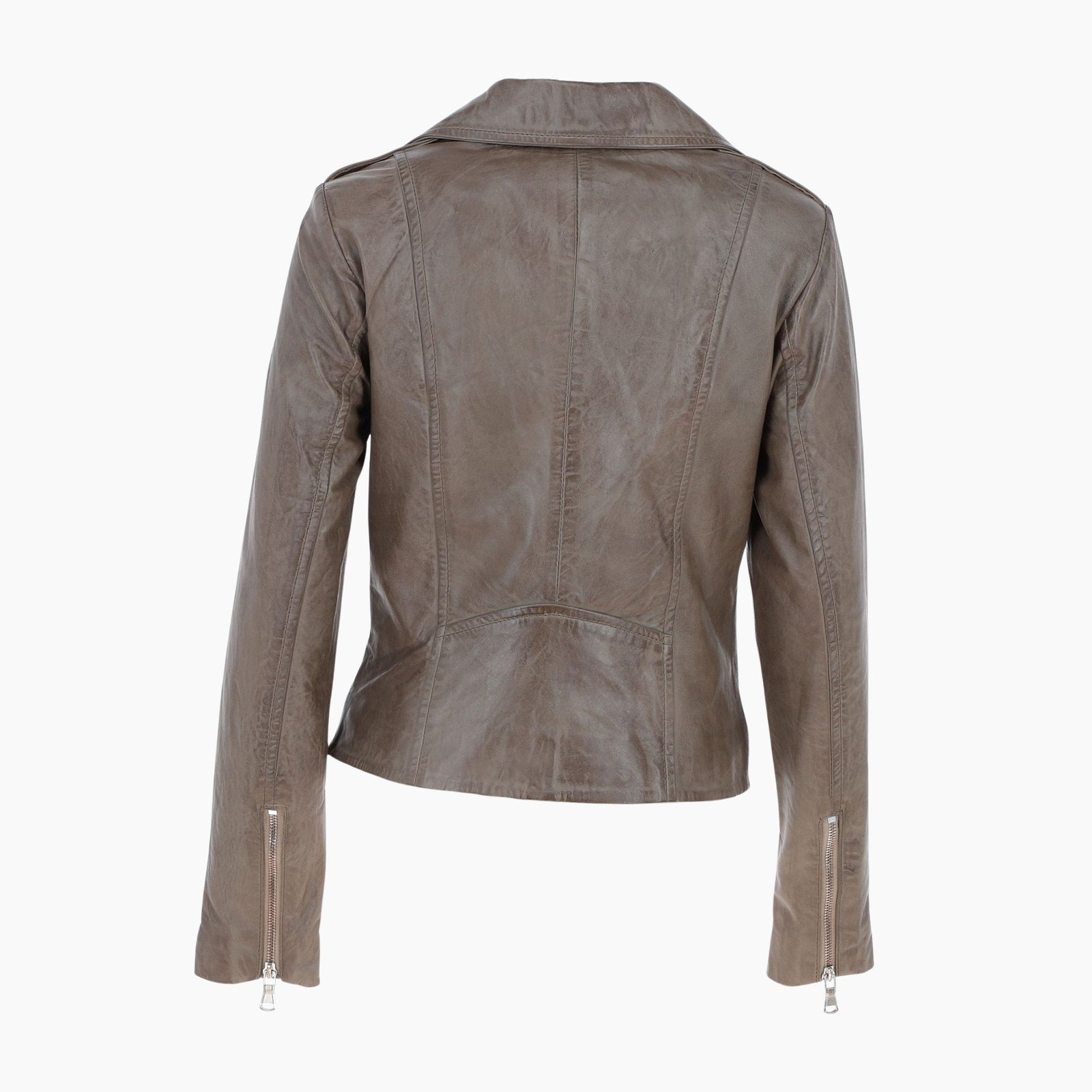 Vogue Jacket Exquisite Leather Ladies Biker Jacket Taupe