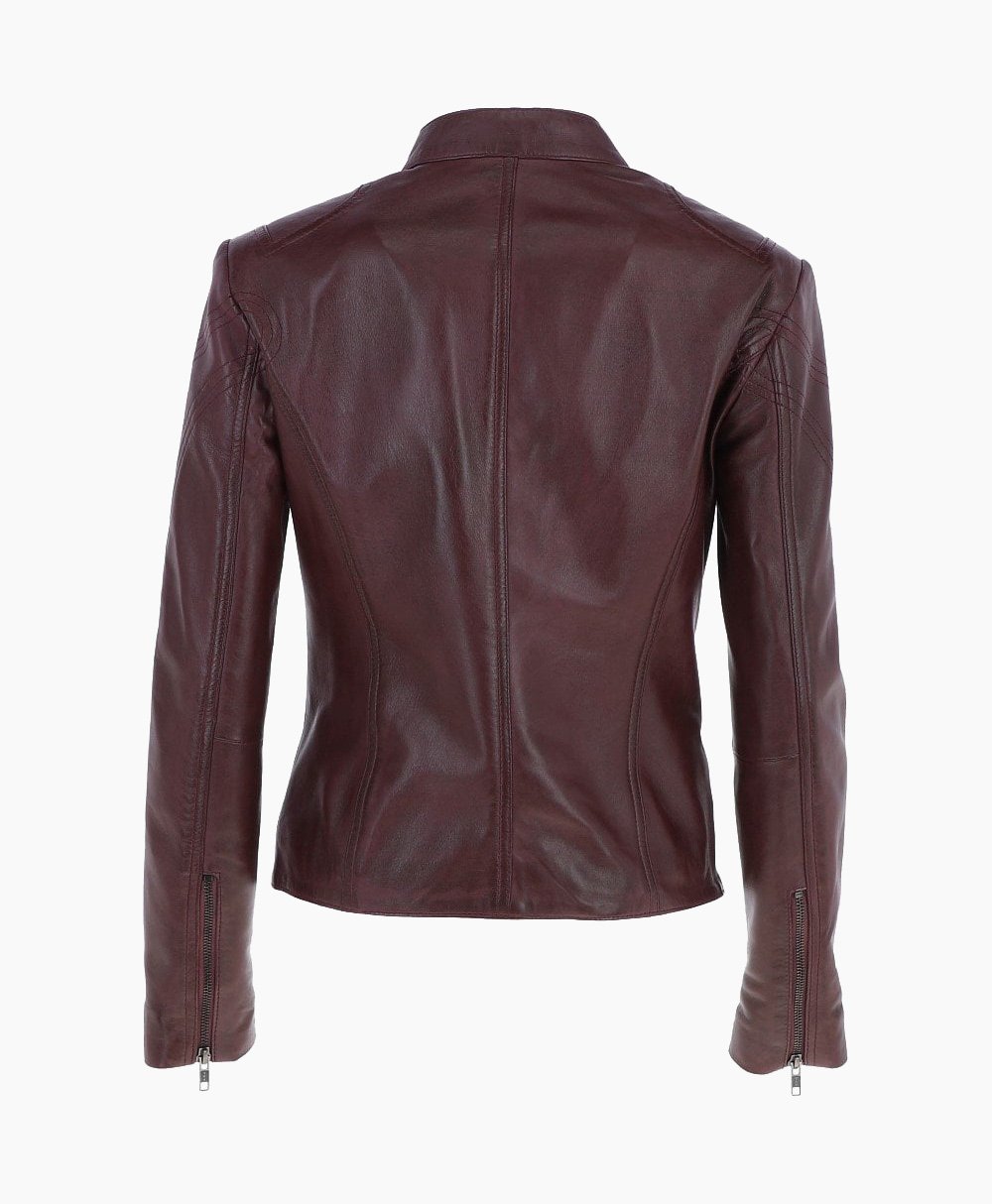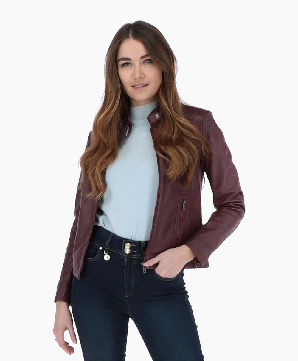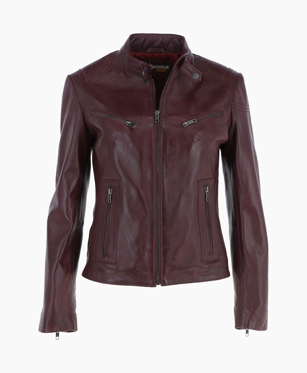 Vogue Jacket Women’s Leather Biker Jacket Burgundy Alton