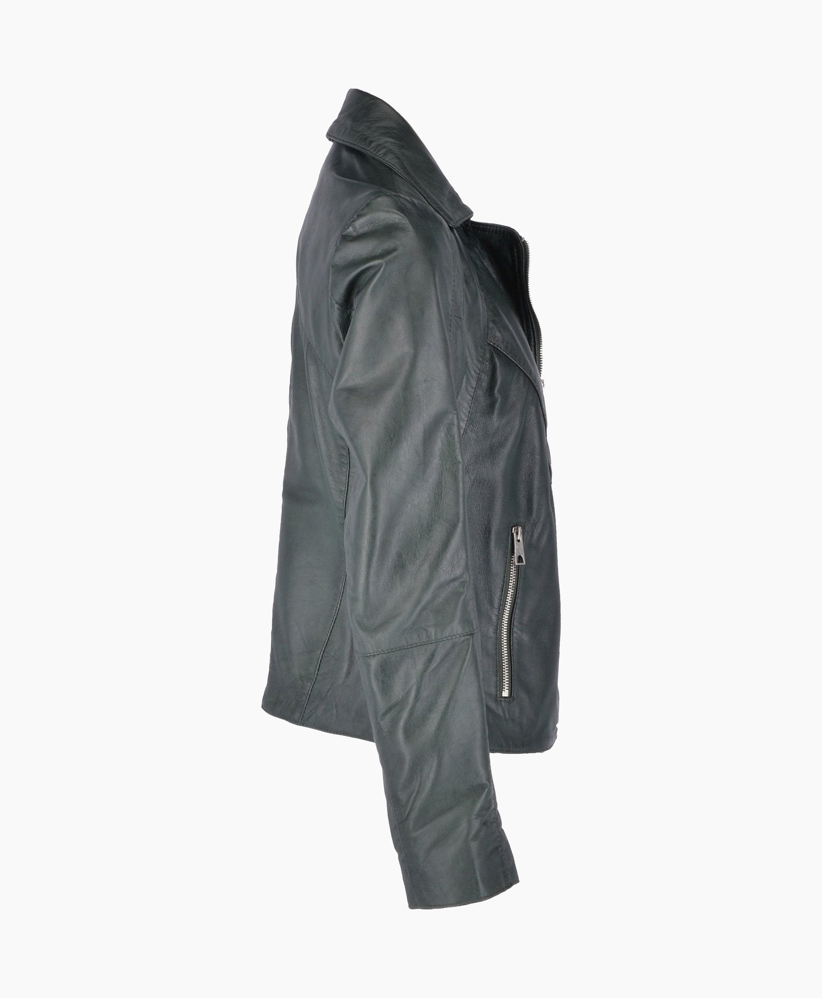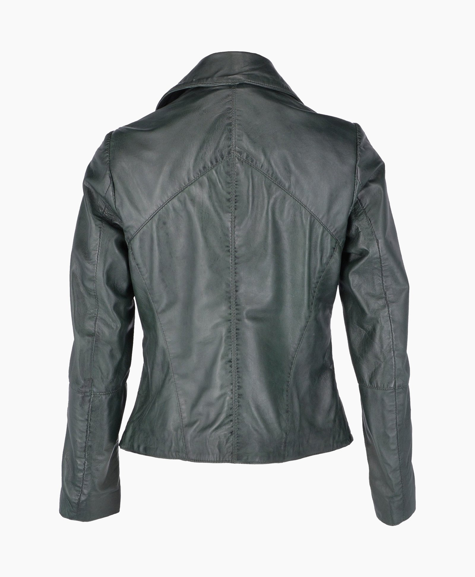 Women’s Leather Biker Jacket Green El Dorado luxury green women leather biker jacket in green from Vogue Jacket features modern fashion detail. Crafted from quality hides, with a vintage wash and hand waxed effect for a buttery soft leather finish. This stylish women leather jacket will add vintage character and a classic edge to any look.