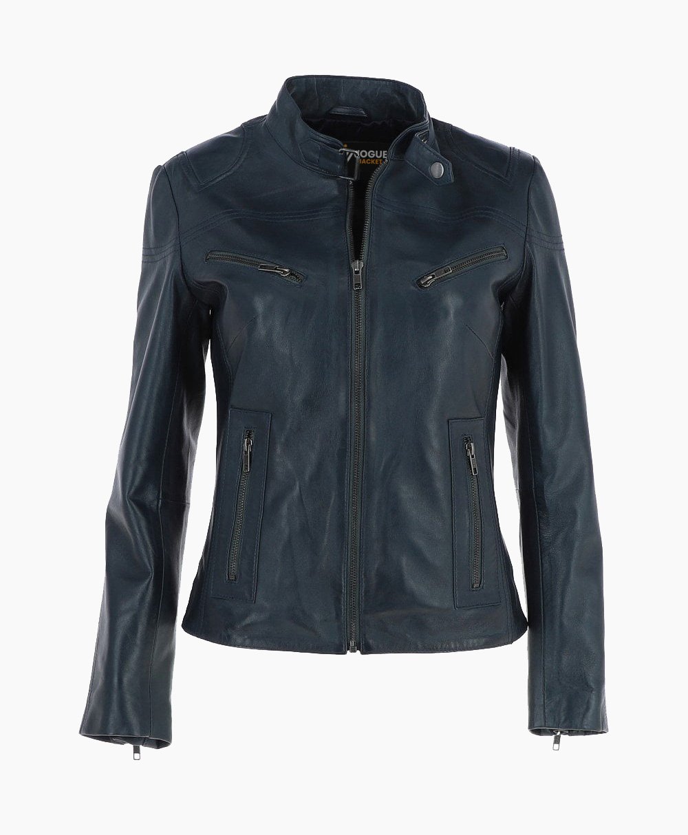 Vogue Jacket Women’s Leather Biker Jacket Navy Alton