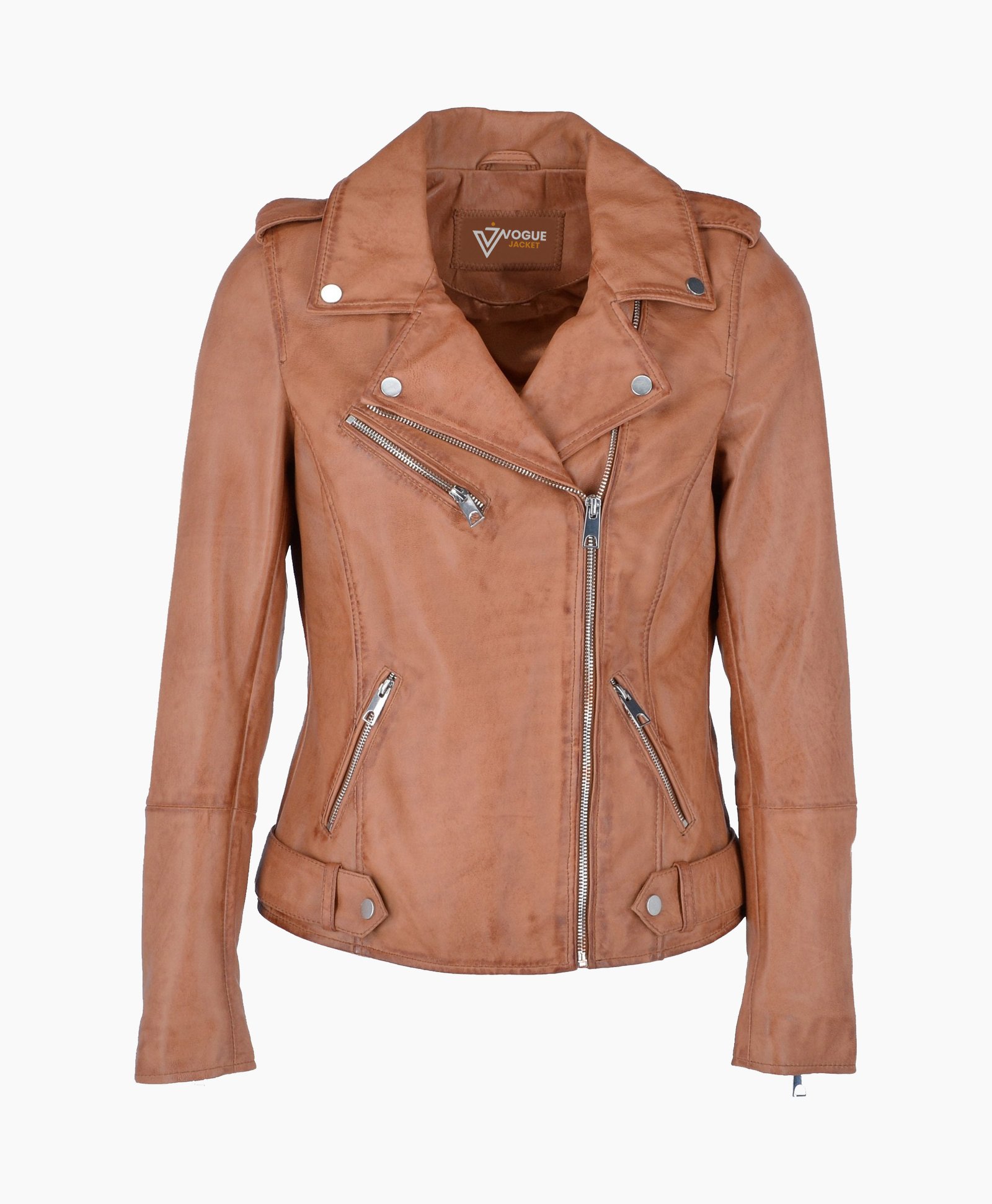 Vogue Jacket Women’s Leather Biker Jacket Tan Ruston