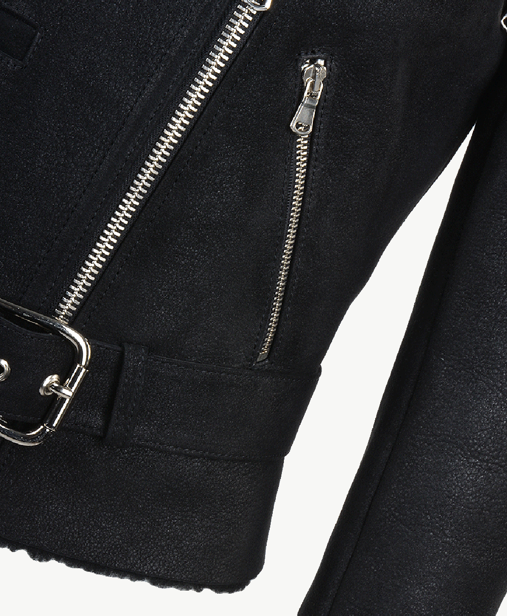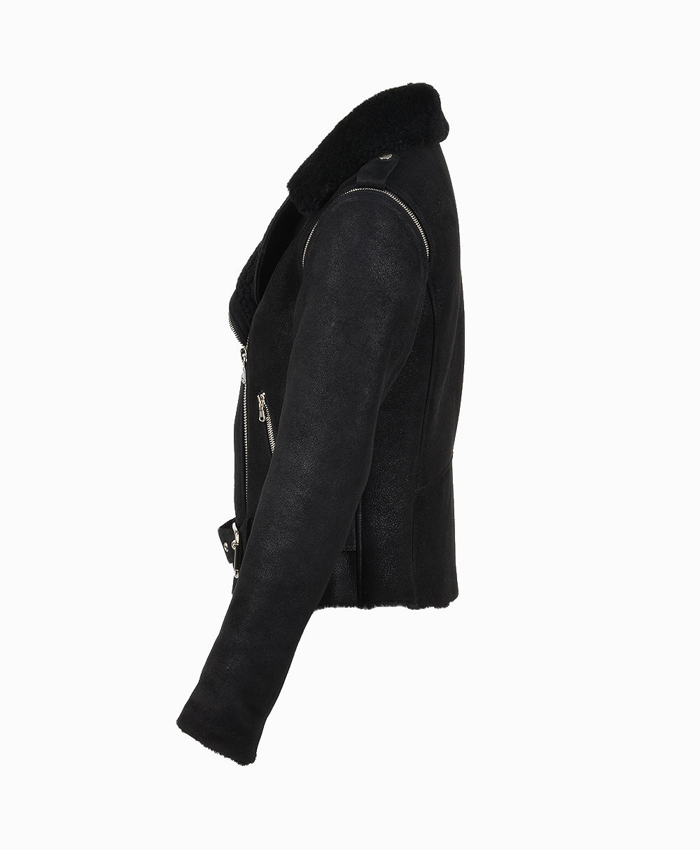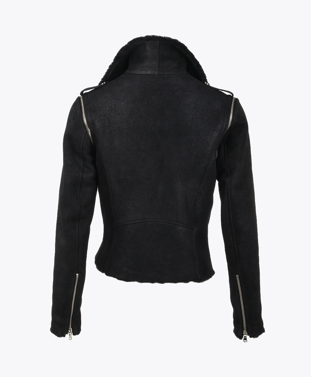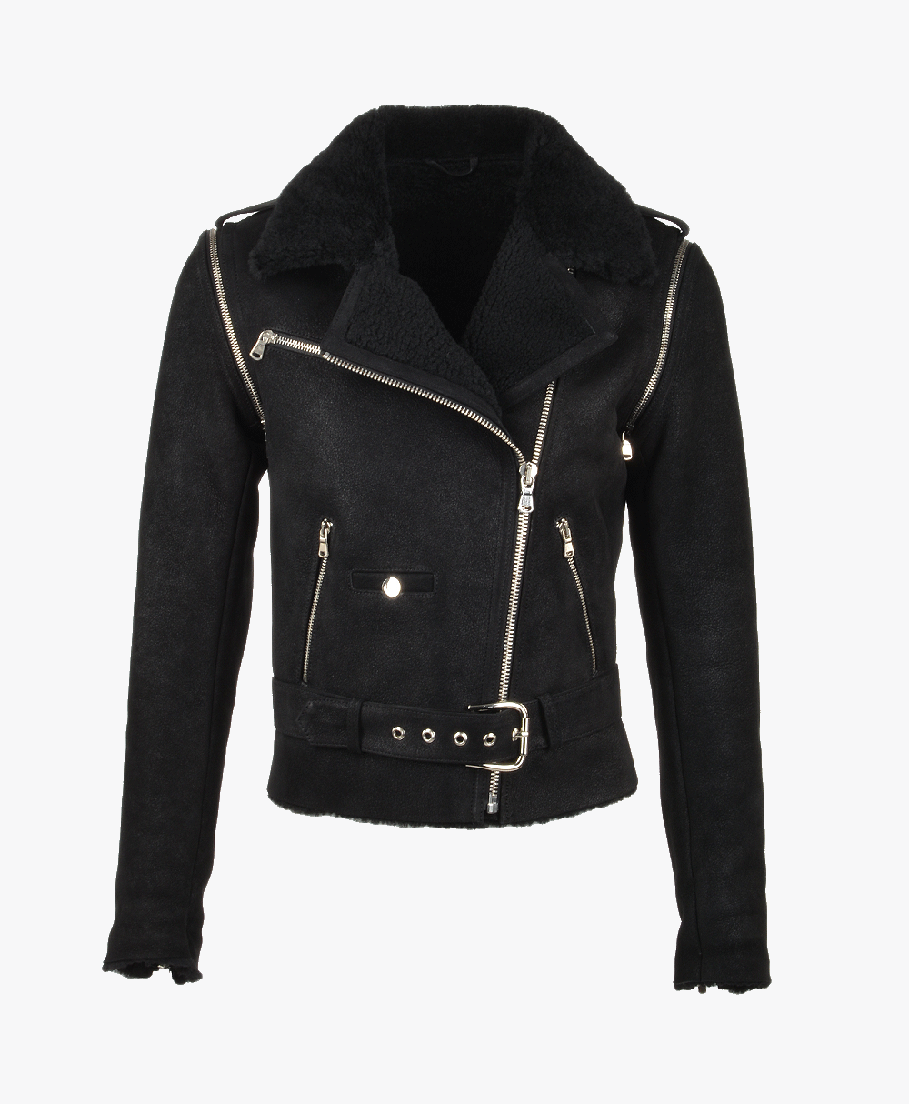 Women’s Leather Biker Pilot Jacket Black Saugus beautifully cut and fitted this authentic modern women sheepskin belted pilot jacket from Vogue Jacket is the perfect 2-in-1 jacket. Fashioned in a smooth tailored cut with the vintage rough edge finishes. A real feminine jacket with a strong spotlight on luxury leather. The leather has been hand rubbed to create a soft slightly velvety feel . Craftsmanship at its best from Vogue Jacket. Tackle the sharp temperatures with this outerwear. and zip off the sleeves for a more rebellious look.