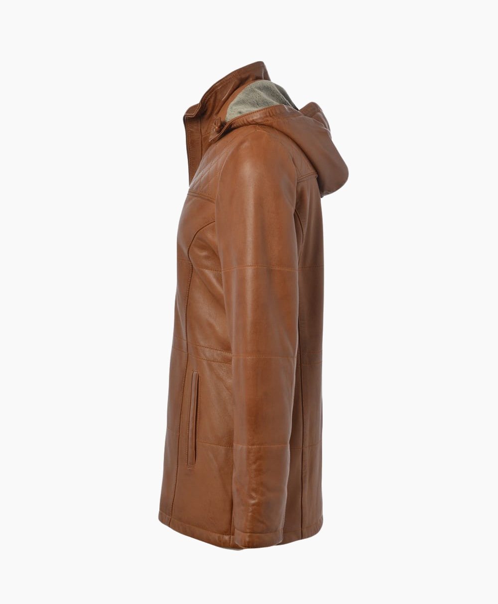 - Detachable leather hood with material fur lining