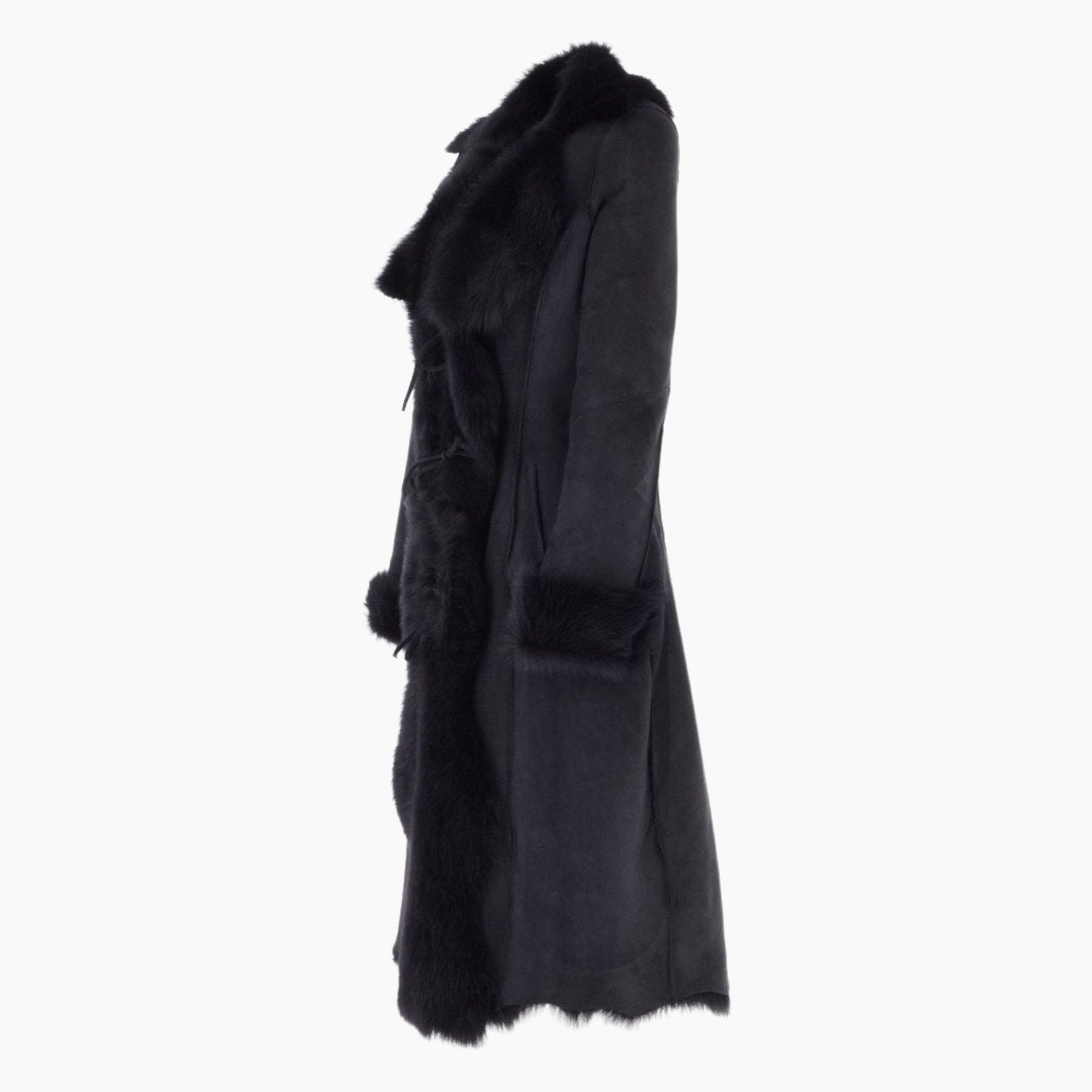Make a bold winter statement with the Long Length Toscana Suede Leather Coat in Ocean from Vogue Jacket, a luxurious and handcrafted piece designed for elegance, warmth, and timeless style. Made from 100% genuine long-length shearling with a hand-buffed suede finish, this coat combines sophistication with premium comfort.