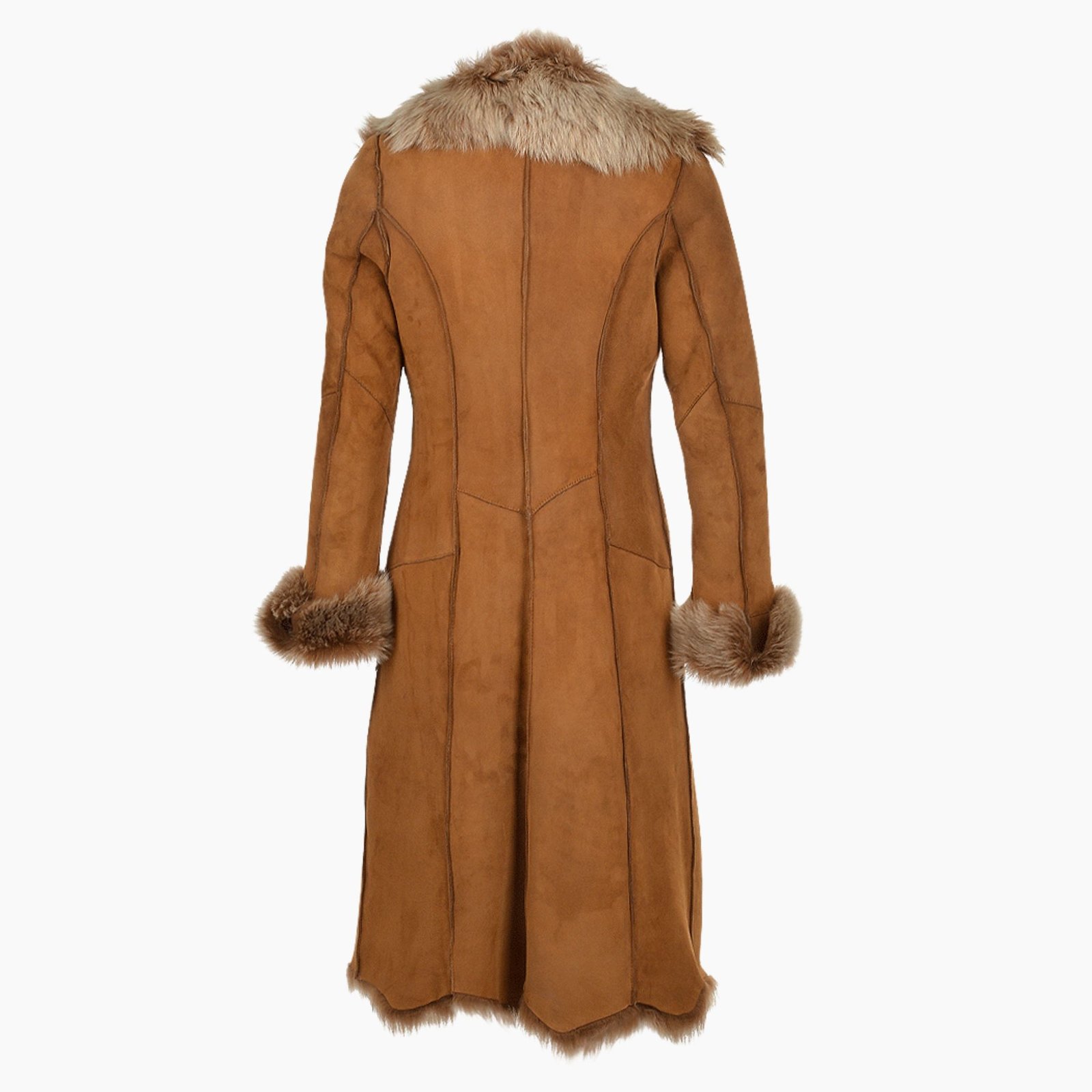 Vogue Jacket Women’s Long Length Toscana Suede Leather Coat Tan