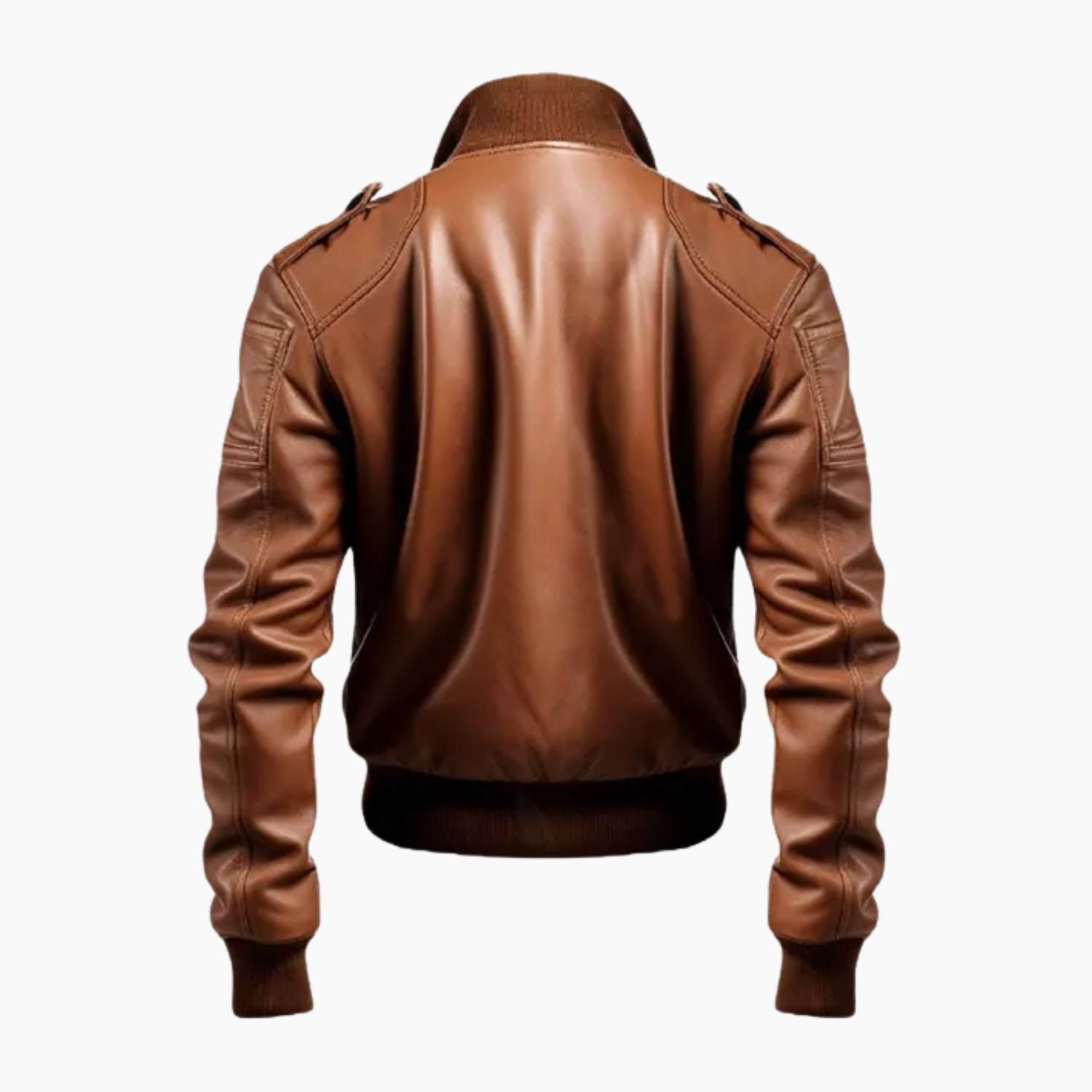 Whether dressed up or paired with casual attire, this brown bomber jacket stands out as an essential piece for modern men who value style and craftsmanship.