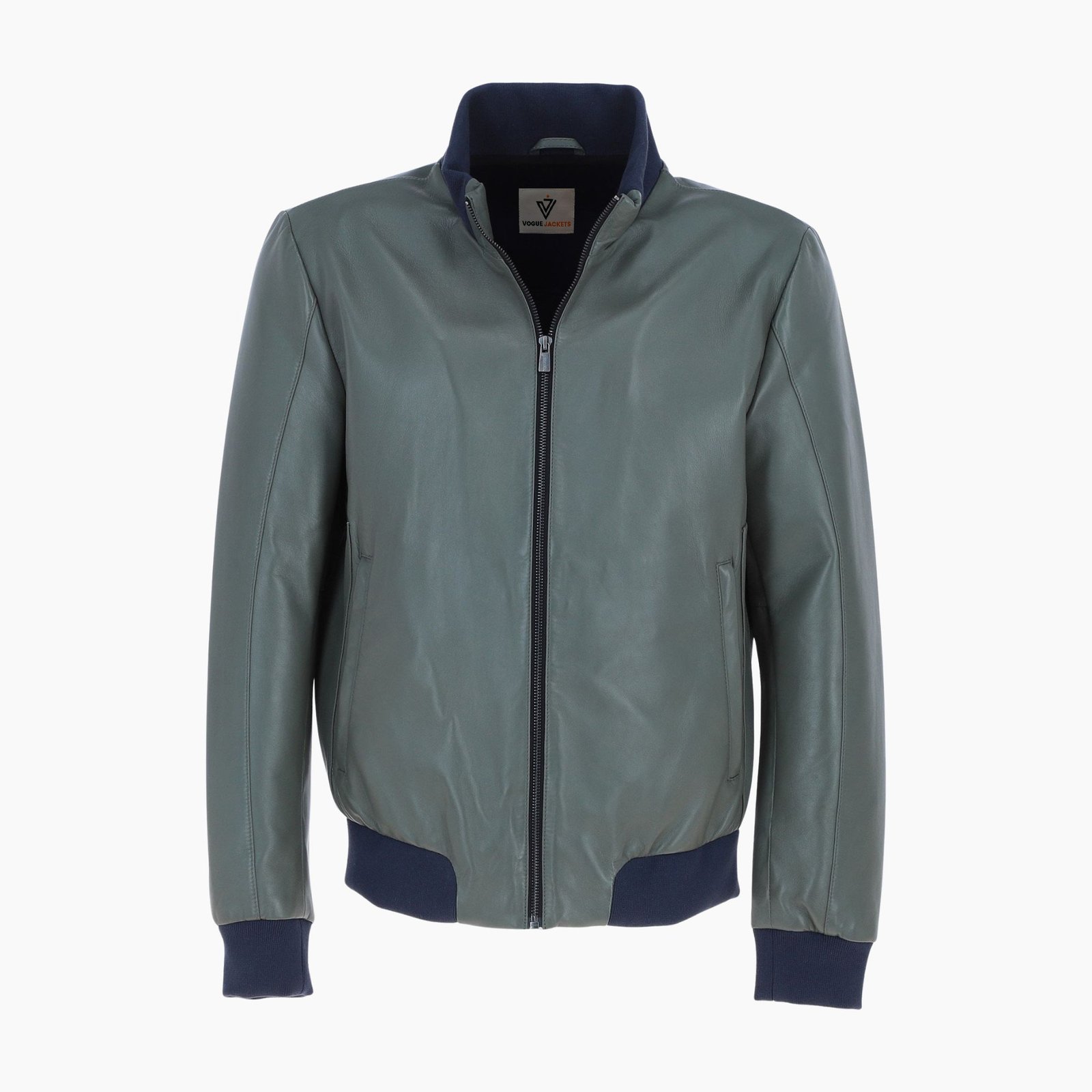 Vogue Jacket Mens Modern Bomber Leather Jacket Green