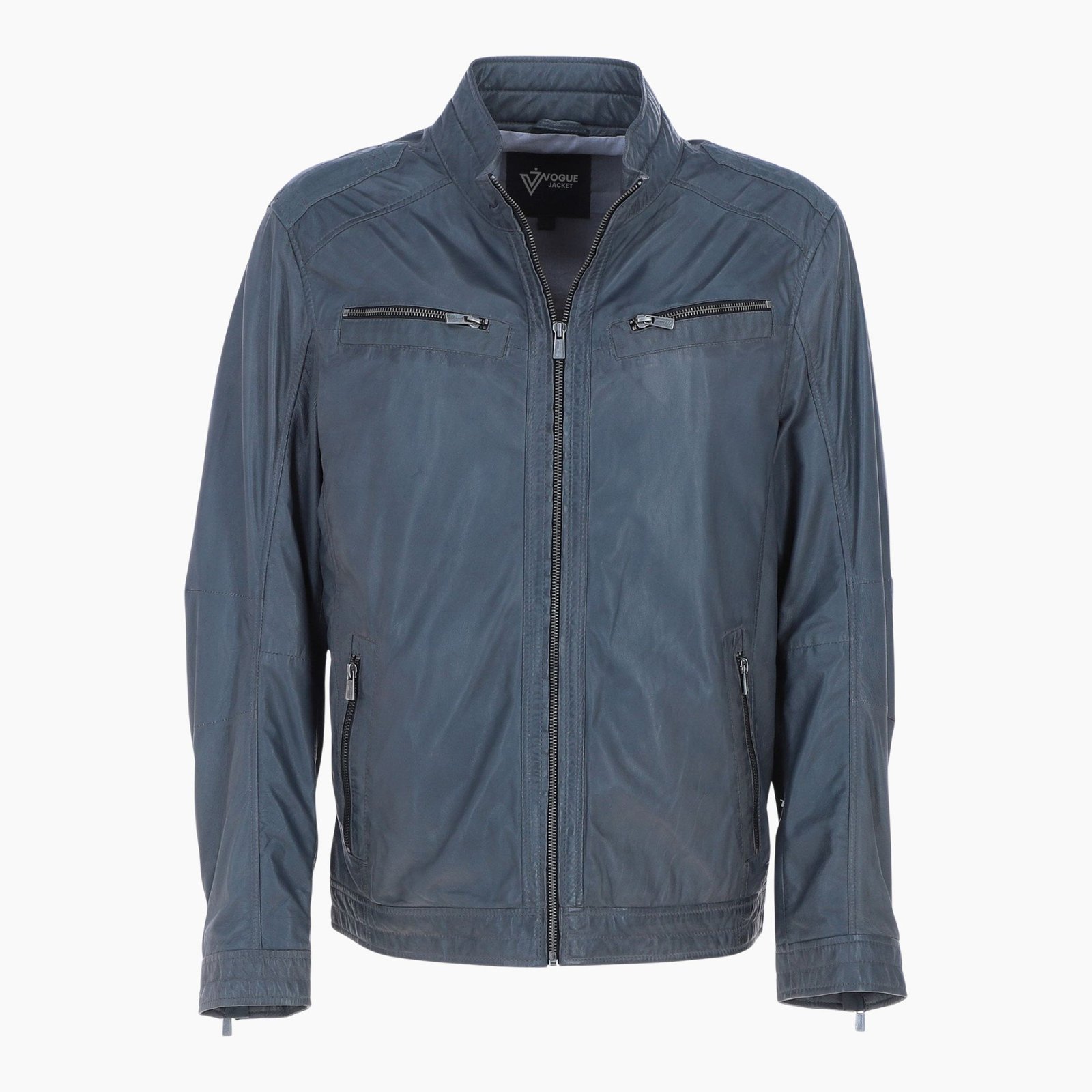 Constructed from high quality premium leather, this raven grey biker leather jacket by Vogue Jacket offers long lasting performance and a smooth, structured finish. The fully lined interior enhances comfort and durability, making it ideal for daily wear in multiple seasons.