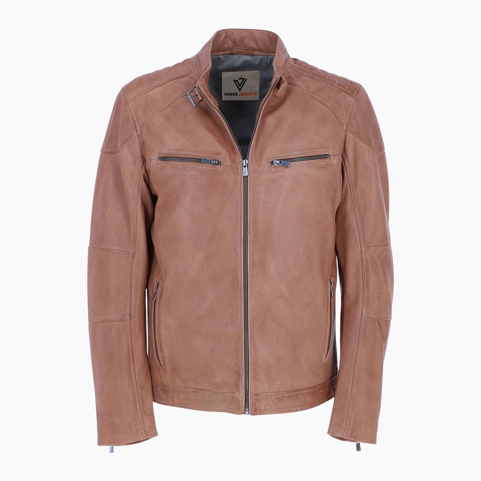 Vogue Jacket Mens Real Leather Biker Jacket Camel