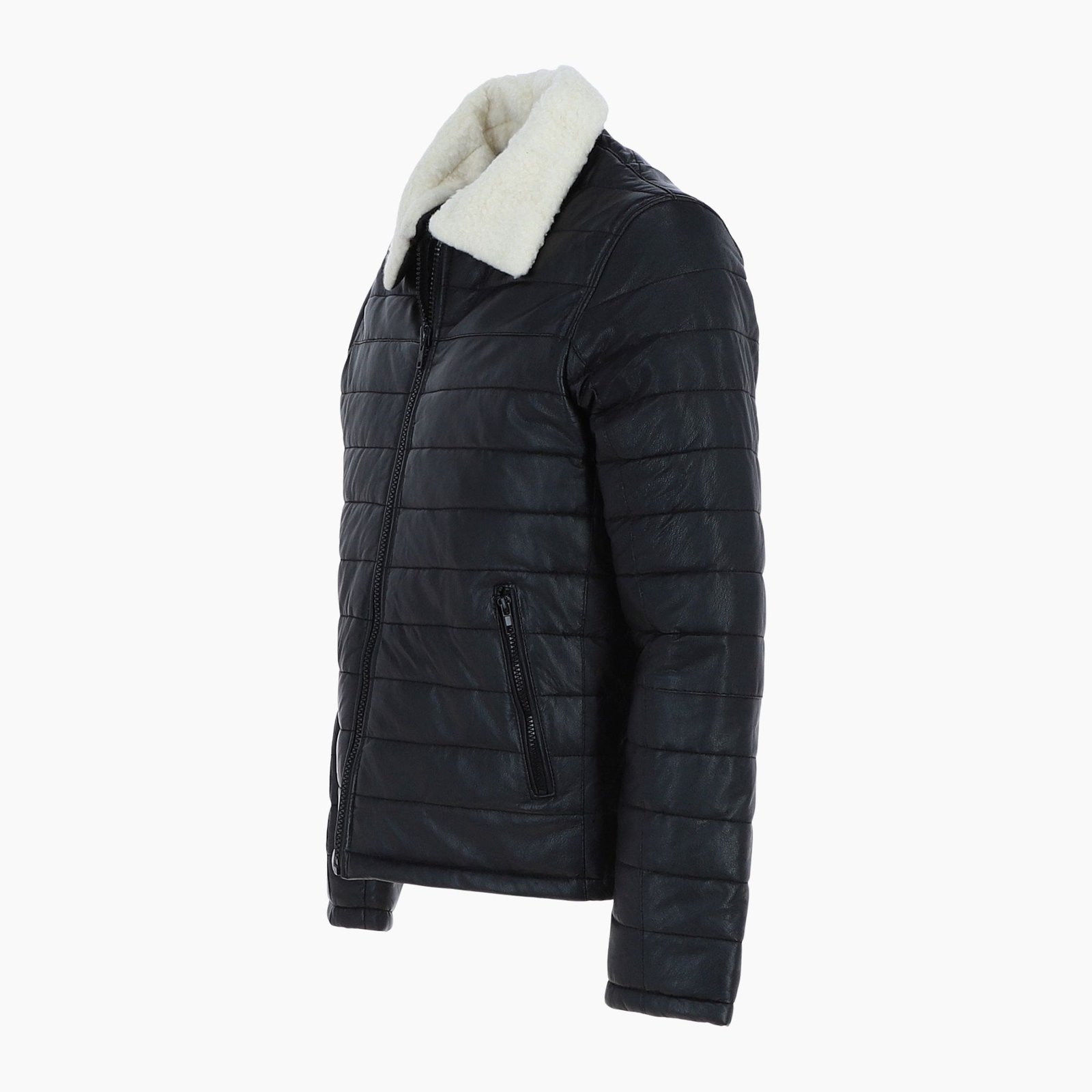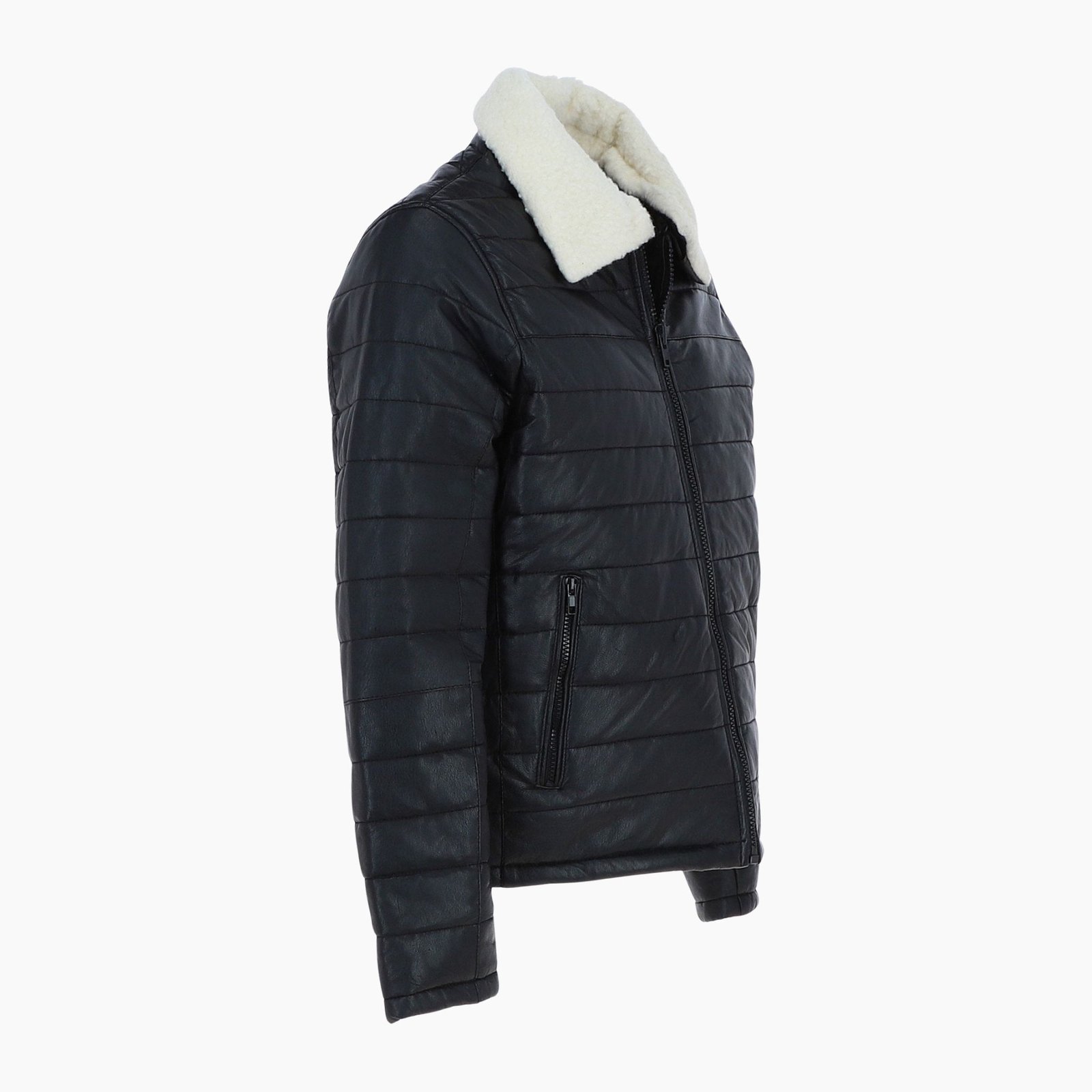Designed for functionality, the jacket features a durable front zip fastening and a fully lined interior for superior insulation. Two secure side zip pockets keep your essentials safe, while two inside pockets provide additional storage. Whether you’re heading to work, traveling, or enjoying a night out, this leather puffer jacket adapts effortlessly to any occasion.