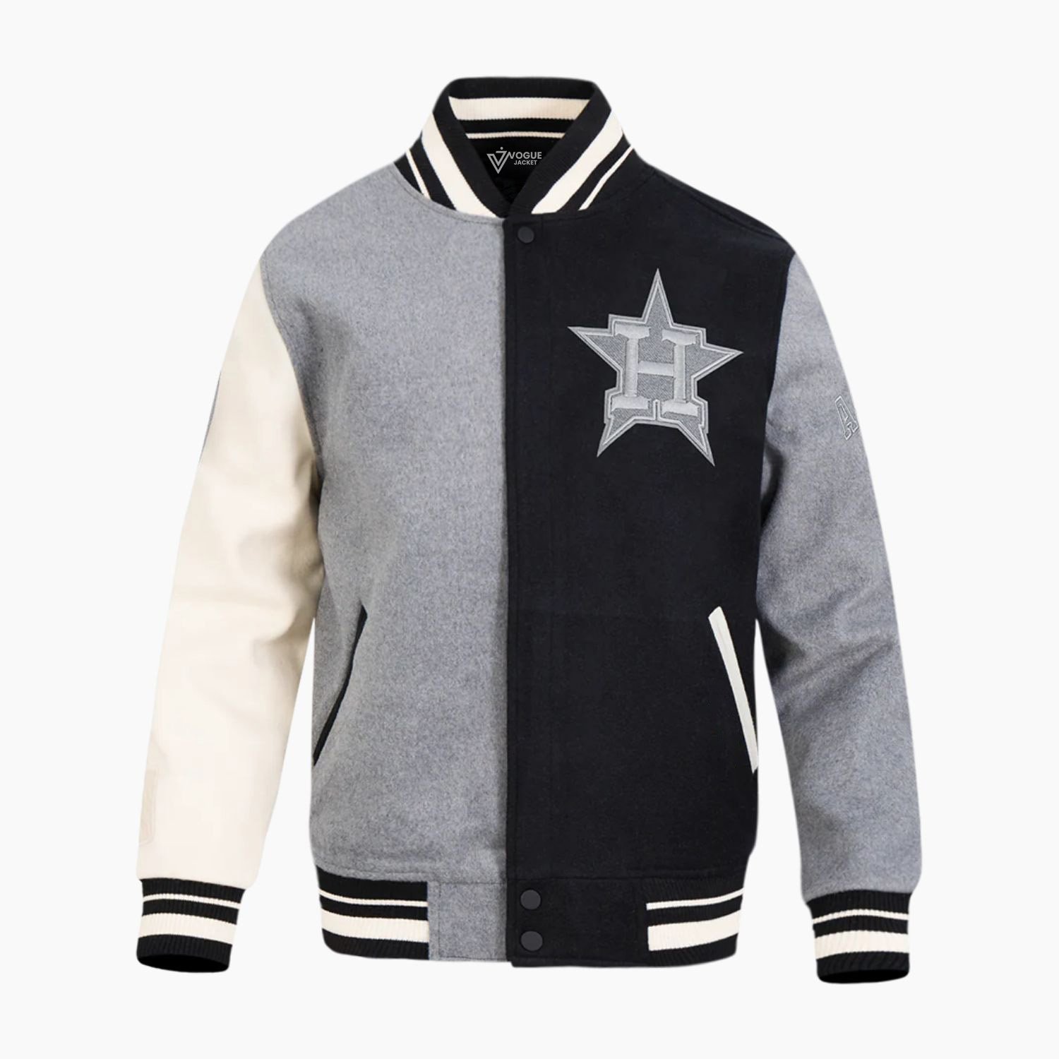 MLB Houston Astros Reverse French Terry Men’s Color Block Wool Varsity Jacket