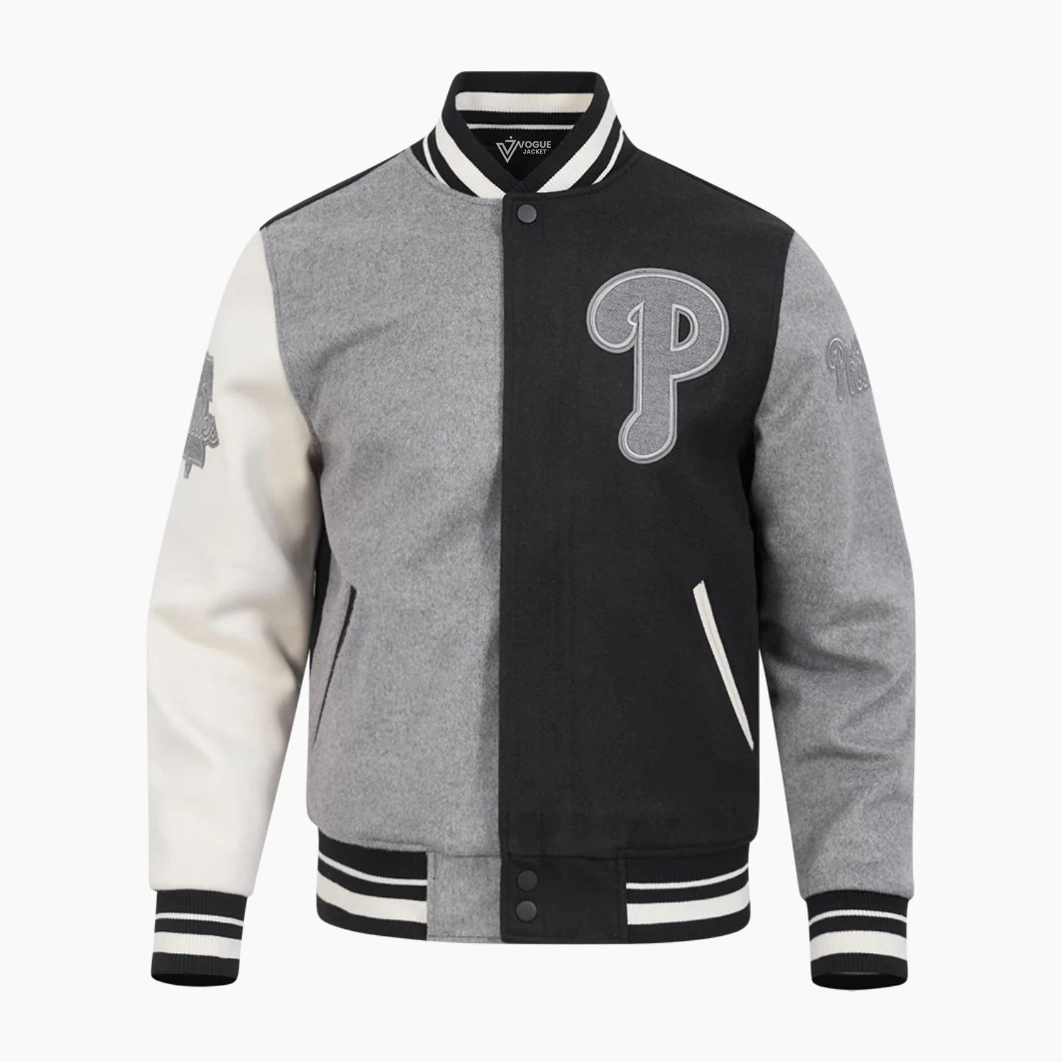 Rep the Phillies in bold style with the Philadelphia Phillies Reverse French Terry Men’s Color Block Wool Varsity Jacket by Vogue Jacket a modern twist on the classic varsity design. Built for die-hard baseball fans, this jacket blends premium wool construction with stylish reverse French terry accents and a color-block finish that makes you stand out on game day and beyond.