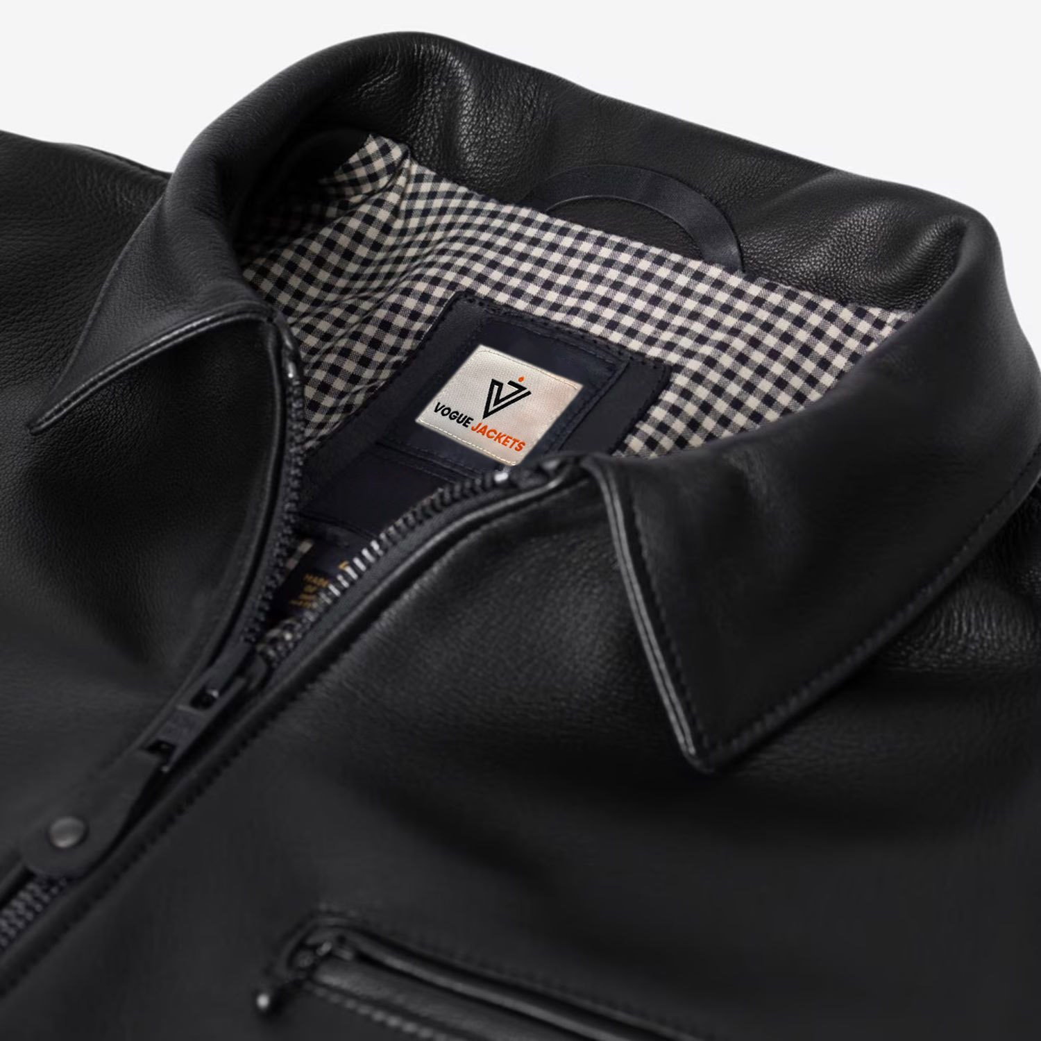 The N.Y.C. Vogue Jacket Men’s Black Leather Delivery Jacket by Vogue Jacket blends city attitude with refined craftsmanship for a look that never goes out of style. Designed with a sleek zip-up front, this jacket offers the perfect balance between rugged utility and polished fashion. Featuring two hip pockets and a zippered chest pocket, it offers everyday practicality wrapped in premium design.