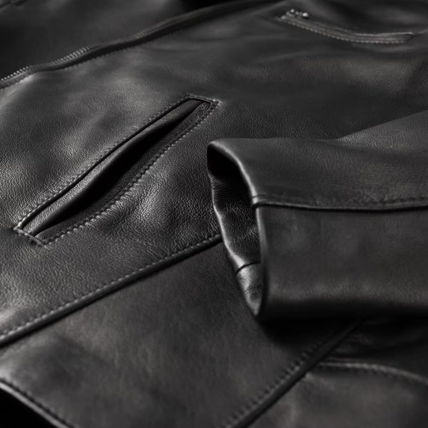 Made exclusively for us by N.Y.C. Vogue Jacket, a legendary American outerwear brand, the jacket is handcrafted in the USA using 100% soft, supple leather. The interior is thoughtfully designed as well black jackets feature quilted houndstooth cotton lining, while the brown version includes a smooth polyester lining, offering comfort and quality in every wear. This premium piece is built to last and meant to be cleaned only by a leather specialist.