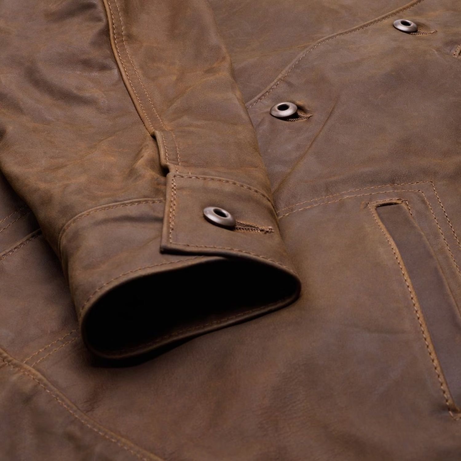 Designed to function as a reliable daily essential, it features two exterior hip pockets, an upper zipper pocket, and an interior pocket, offering secure storage for your essentials. The jacket is styled with metal shank buttons in an antiqued copper finish, adding a timeless touch that pairs effortlessly with both casual and elevated looks.