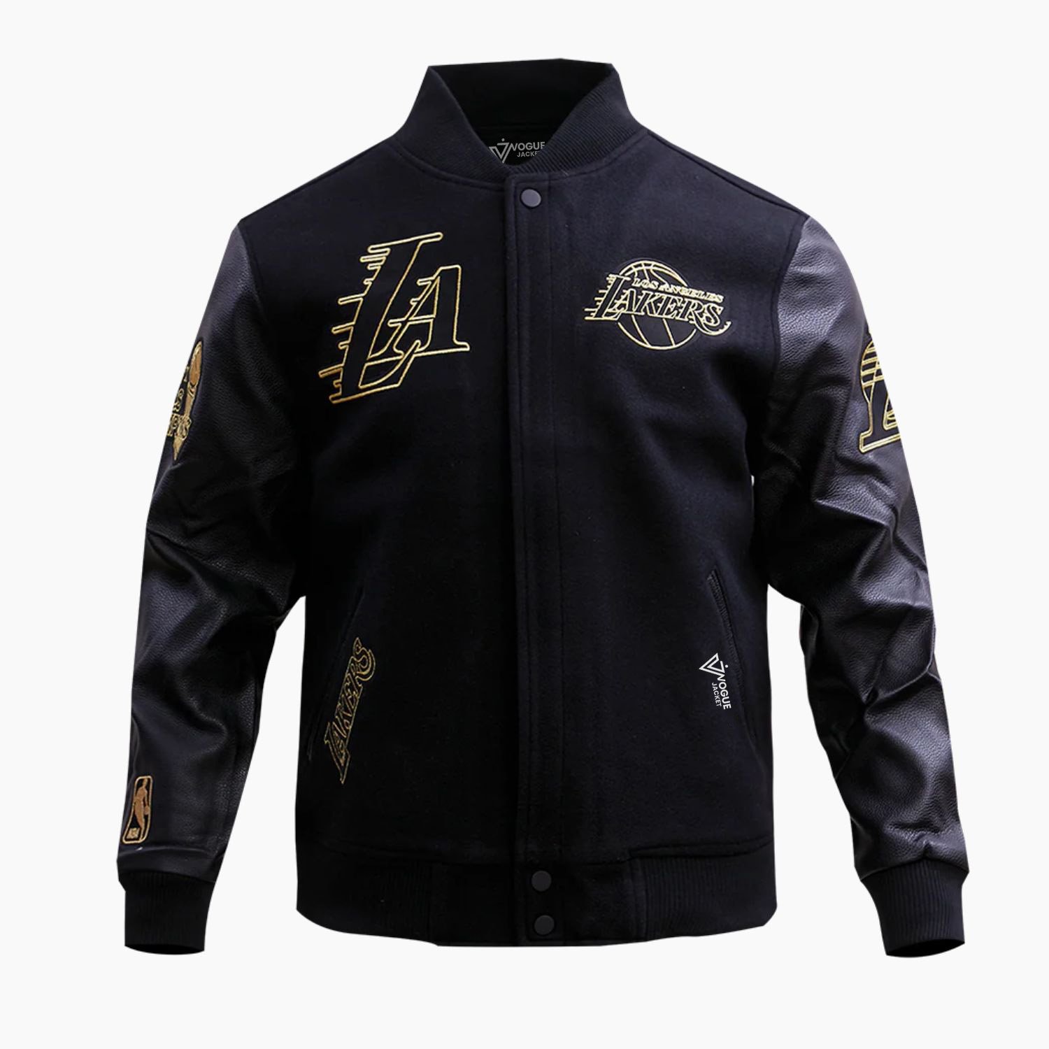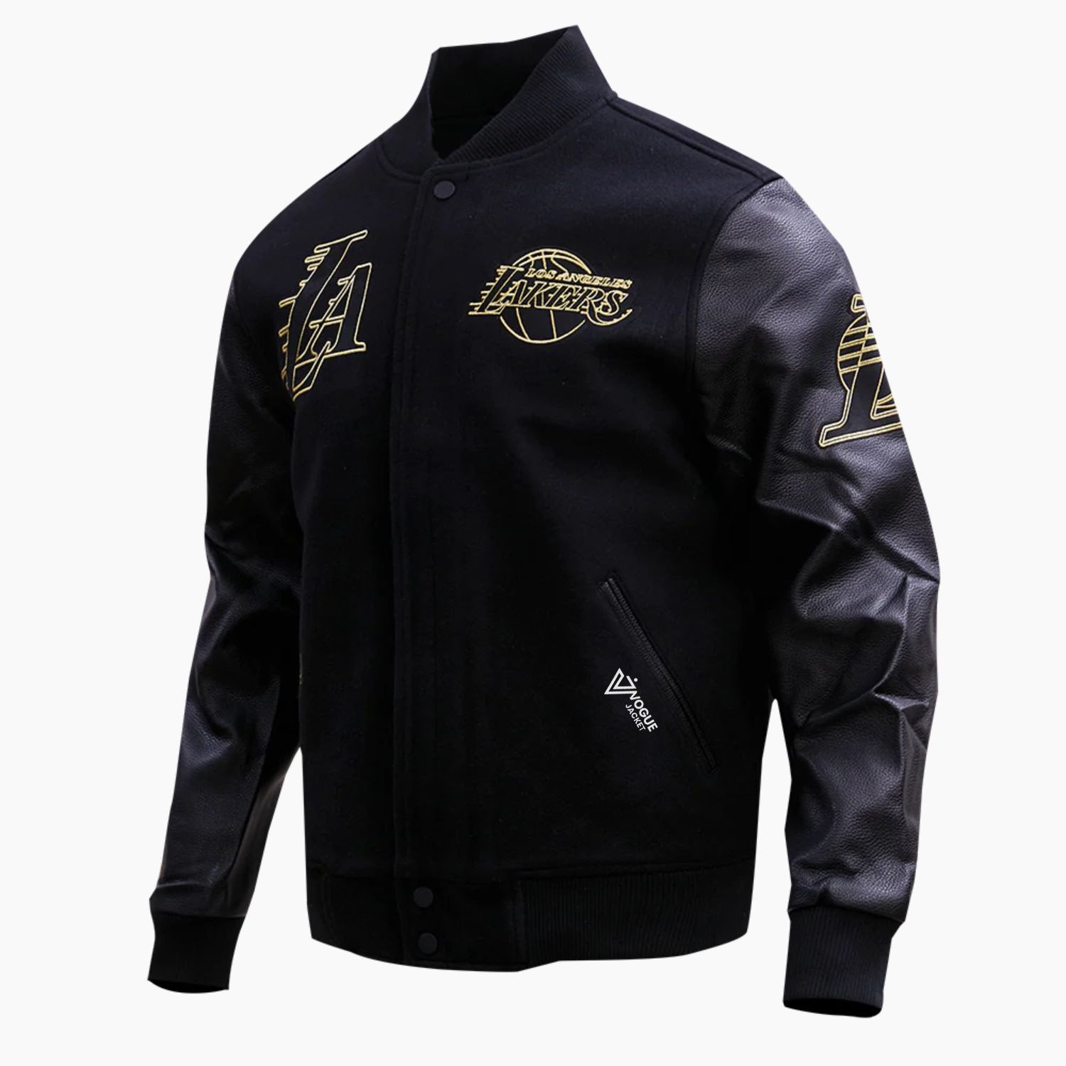 The NBA Los Angeles Lakers Black and Gold Mens Wool Varsity Jacket by Vogue Jacket is a premium outerwear choice for fans who want a bold classic look inspired by the legendary Lakers. Built with a warm wool body and genuine leather sleeves this varsity jacket offers a perfect blend of comfort durability and authentic team inspired style. Designed for USA based Lakers supporters this jacket delivers an elevated fan experience that looks great on game day or any casual outing.