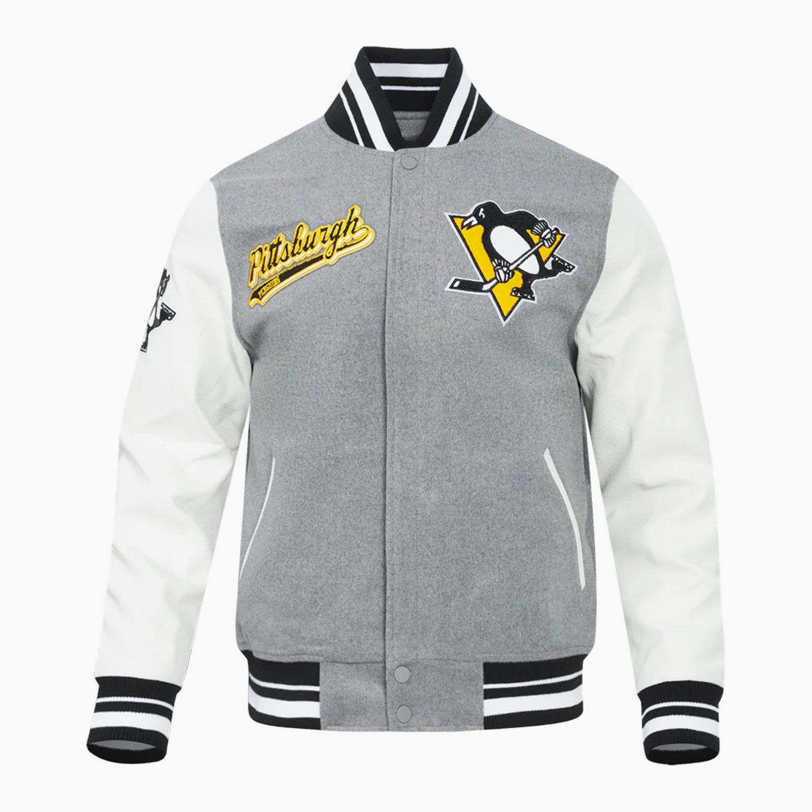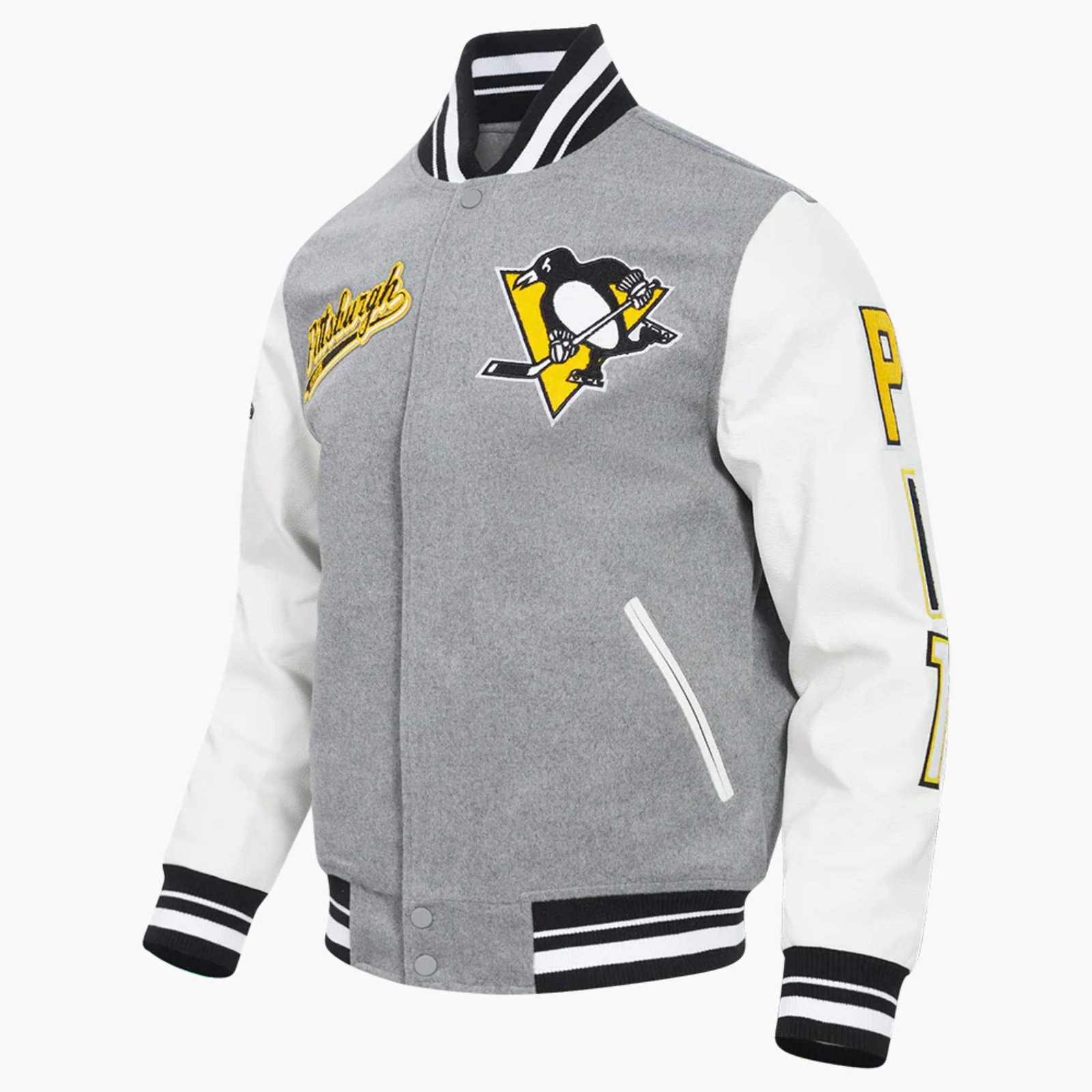 NHL Pittsburgh Grey Penguins Script Tail Men’s Rib Wool Varsity Jacket