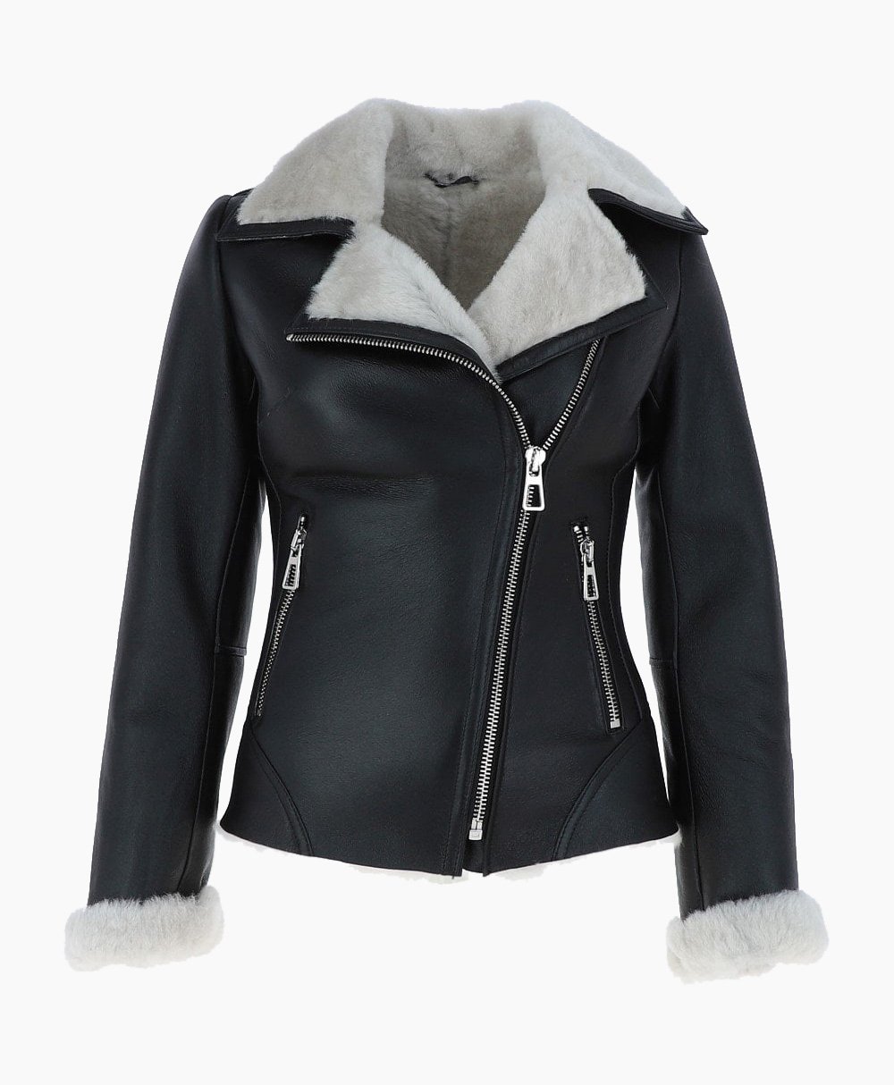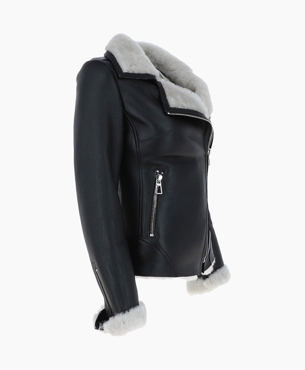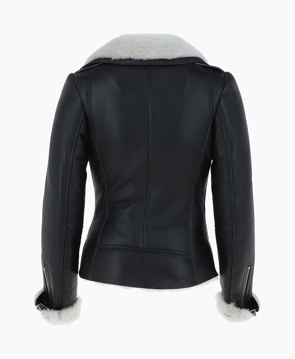 Vogue Jacket Women’s Sheepskin Shearling Leather Jacket Black White Alexander