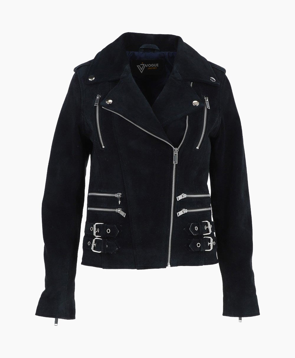 Vogue Jacket Women’s Suede Biker Jacket Navy Largo