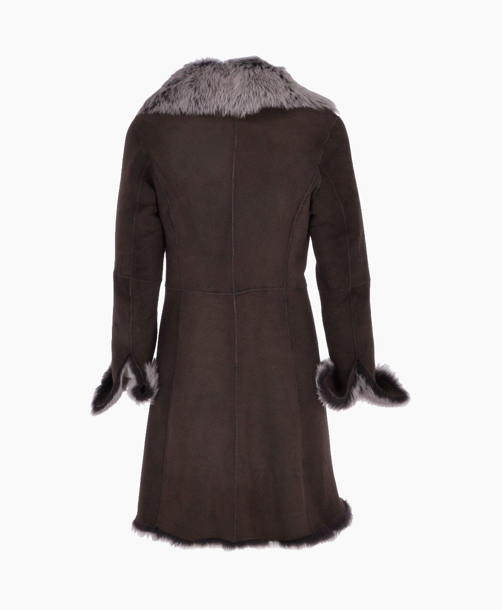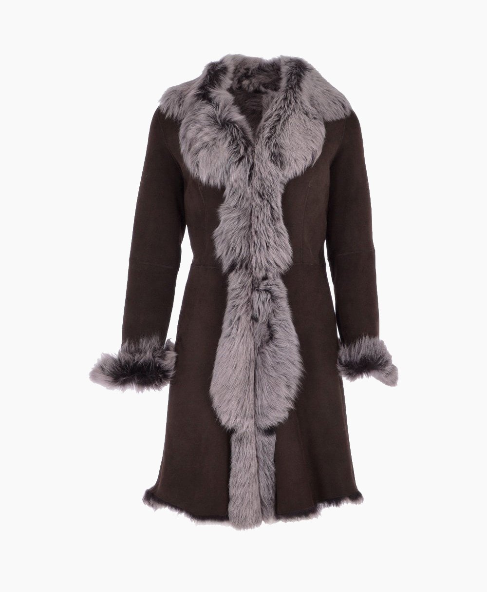 Women’s Suede Leather Coat Brown Bismarck from Vogue Jacket is the perfect outerwear luxury and glamour statement, using only masterful skills of traditional leather craftsmanship to bring you a timeless winter piece to add to your wardrobe collection. Handcrafted and sourced from sustainable hides, this long length, long haired coat is a true treasure to behold. Expect the outer shell to have a soft velvety hand buffed finish using traditional artisan skills for a suede feel, open to find a plush, cozy luxe fur inner.