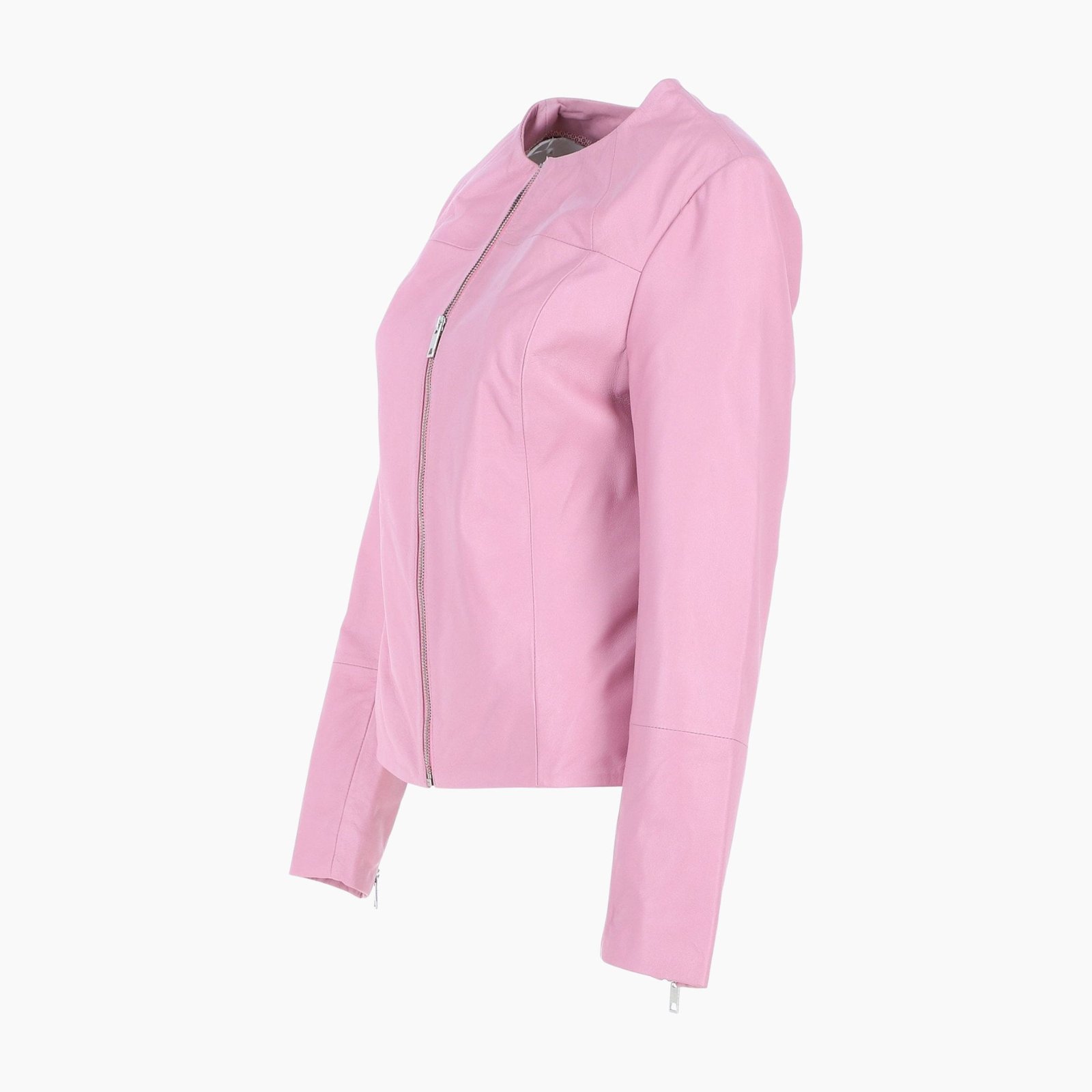 Womens Collarless Leather Fashion Jacket Pink Elizabeth