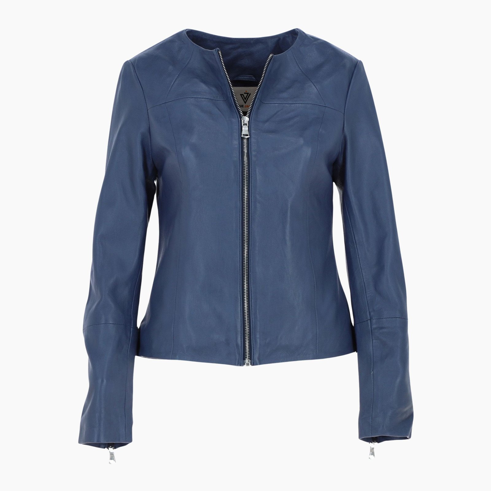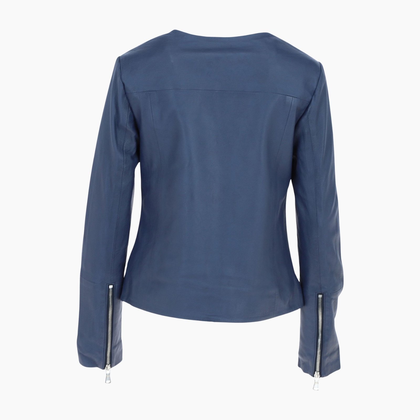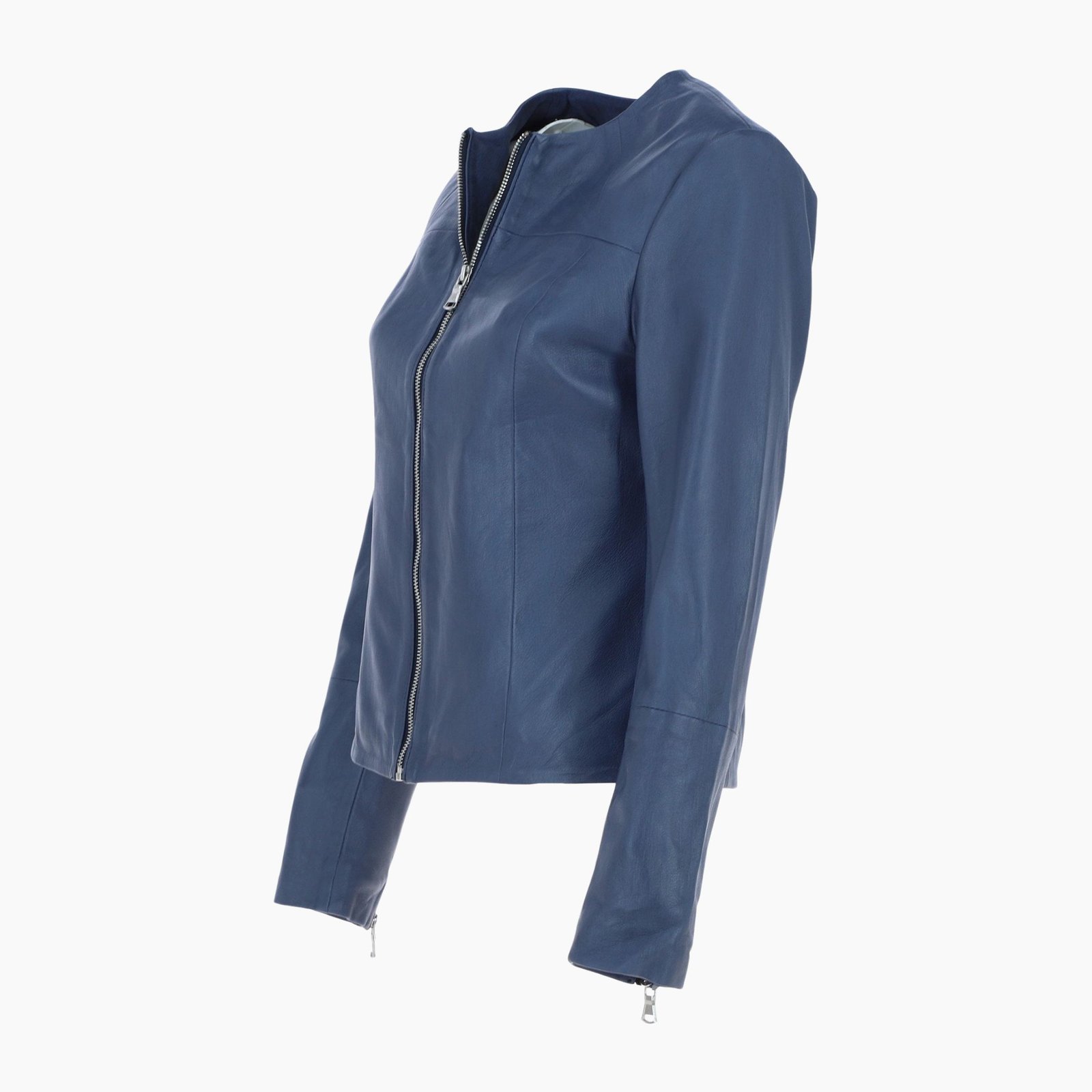 Expertly crafted with precision panel stitching, the jacket enhances your natural shape while adding refined detailing that elevates its overall design. The front zip fastening allows effortless wear, while metallic zip cuffs introduce a subtle touch of edgy glamour, balancing sophistication and bold style.