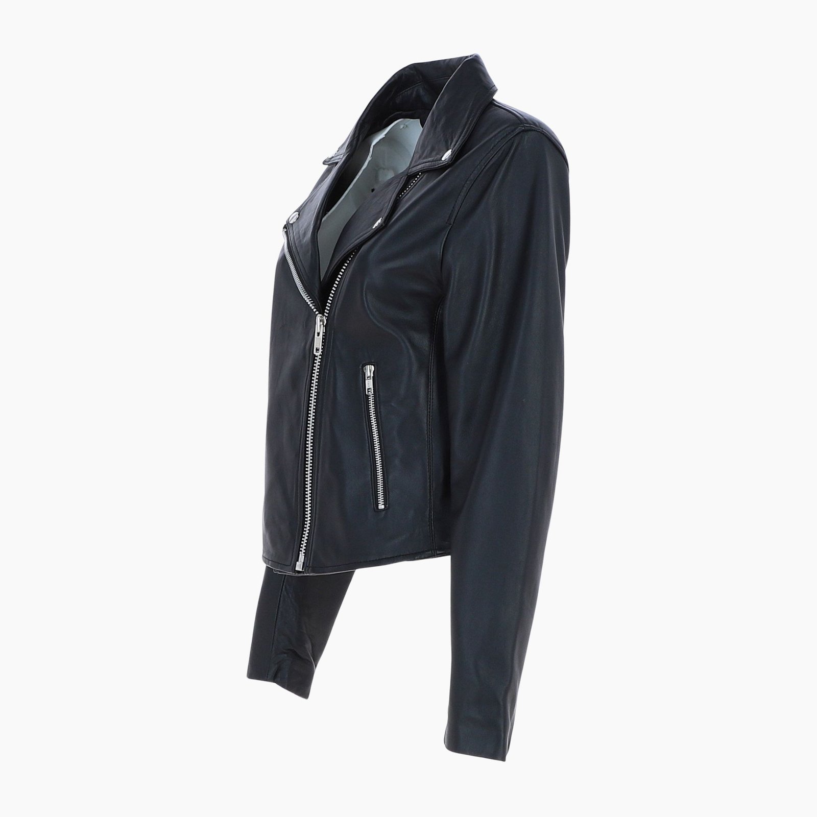 The asymmetric front zipper adds a classic biker attitude, while functional details like zippered side pockets and zip cuffs combine style with practicality. A fully lined interior ensures a smooth, comfortable feel throughout the day.
