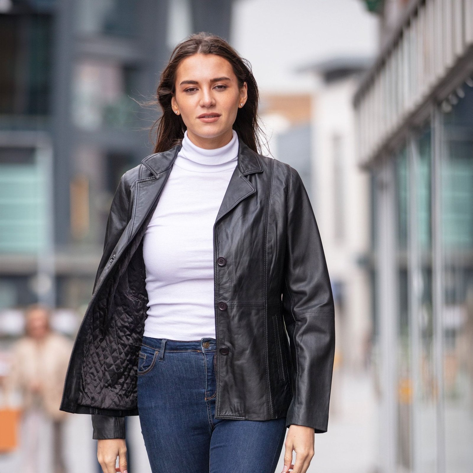 Step into effortless elegance with the Womens Leather Blazer Jacket Black, a timeless wardrobe essential designed for modern women in the USA. This classic black leather blazer offers a perfect balance of sophistication and everyday versatility, making it suitable for office wear, casual outings, and evening occasions.