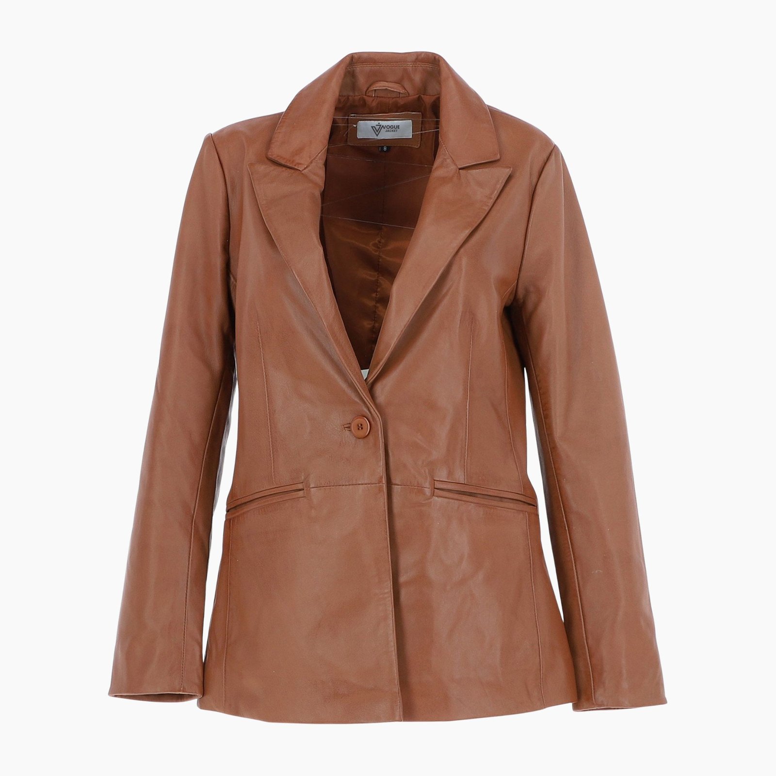 Vogue Jacket Womens Leather Fashion Single Breasted Blazer Tan