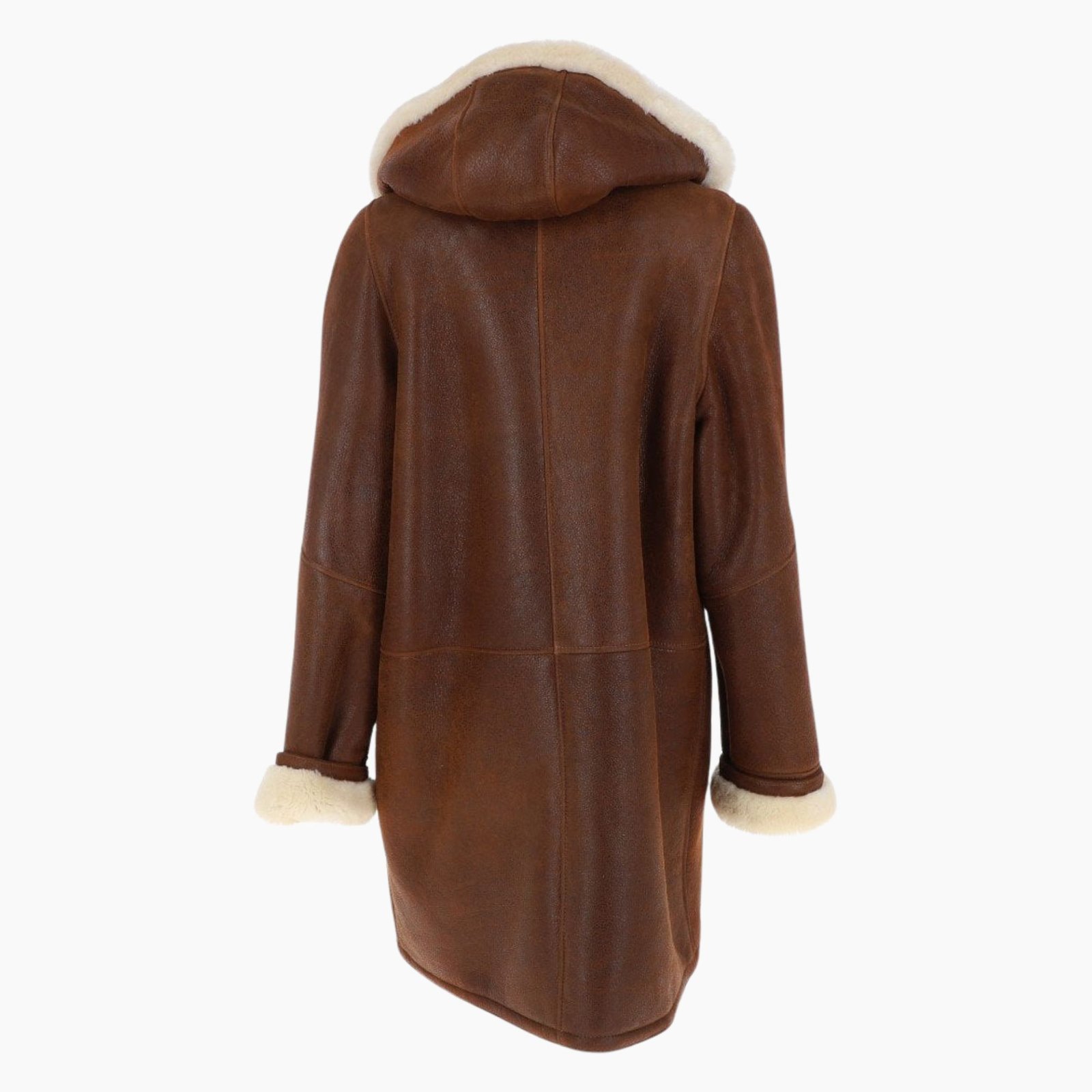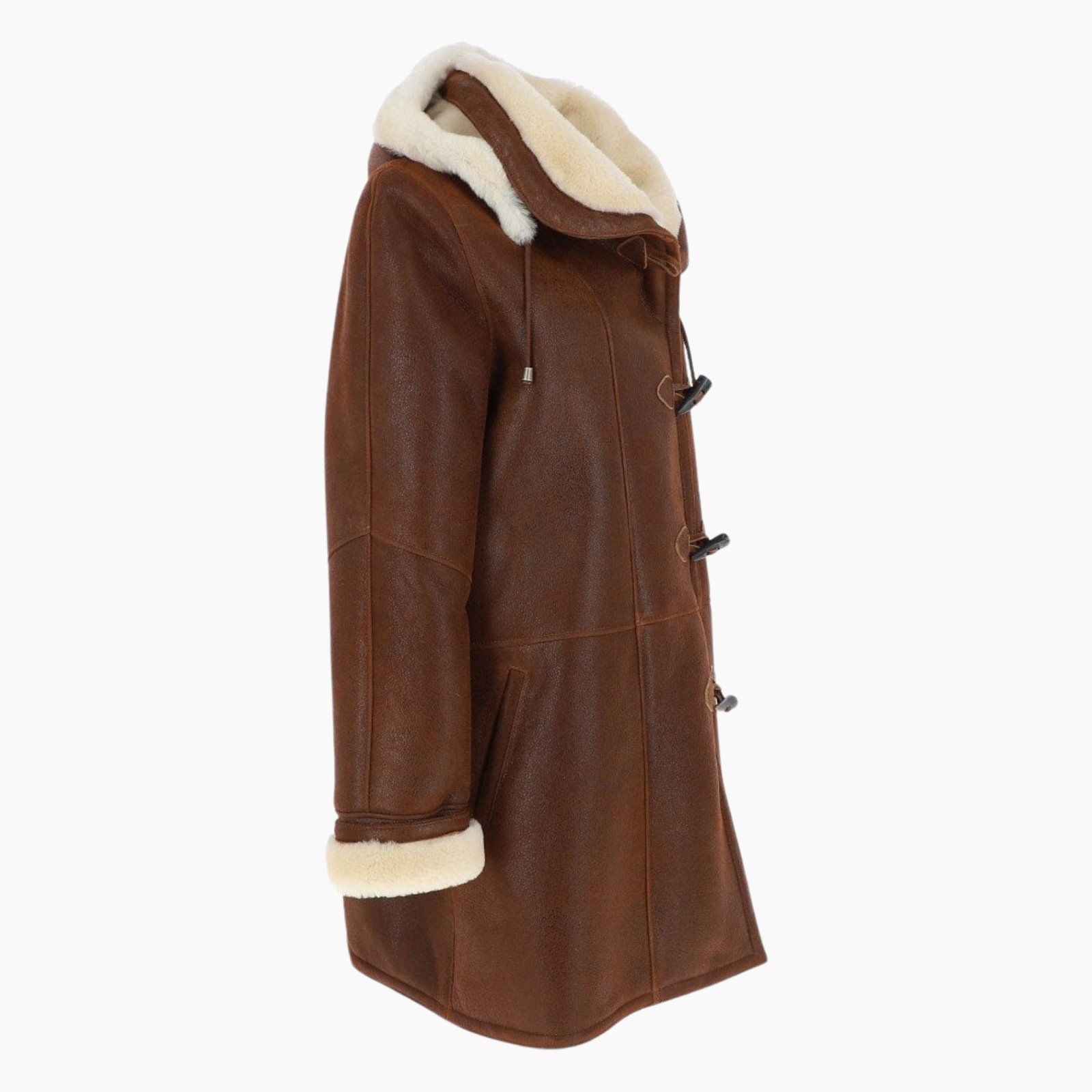 The loose-fit silhouette drapes beautifully over layers, offering a relaxed yet refined look. A detachable sheepskin hood gives you versatile styling—wear it for extra warmth on chilly days or remove it for a more streamlined appearance. The combined toggle and zip closure provides strong weather protection, locking out cold winds while maintaining a stylish finish.